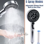Handheld High-Pressure Shower Head 5 Spray Modes Filtering Impurities ON/OFF New ★SPECIAL TIPS: √ Ship within 24 hours Via USPS from NJ ,USA √ 100% New & Excellent Quality √ Professional Customer Service √ Strictly QC, Each set was fully tested before shipping √ Offer delivery with Tracking Number If not 100% satisfied with our products, no-questions asked, we offer 30-day free return & money back. Product Feature 1.Built-in Filter Cartridge: The built-in PP cotton in the shower head can effectively filter sediment, iron filings and other impurities in the water to protect your health. 2.Large Water Output: Strong pressurization of the shower head, large water output, shower can be more comprehensive coverage of the body, rinsing effect is better. 3.Water-Saving Design: The shower head adopts AIR air injection technology, where air is injected into the water flow, reducing the amount of water outflow and achieving water saving. 4.Five Modes: The shower head has 5 water dispensing modes that can be adjusted, which are: shower mode, combination mode, spray mode, 7-pass spray, 6-pass spray, you can choose the water dispensing mode as you like to enjoy the fun of showering. 5.Silicone Water Spout Hole: The shower head adopts silicone water spout hole, which provides smooth water discharge, prevents clogging, and is easy to decontaminate, providing convenience for your life. Product Parameter Material: ABS Process: Electroplating Color: Silver Length: 27.5cm/0.83in Products Include 1x Shower head