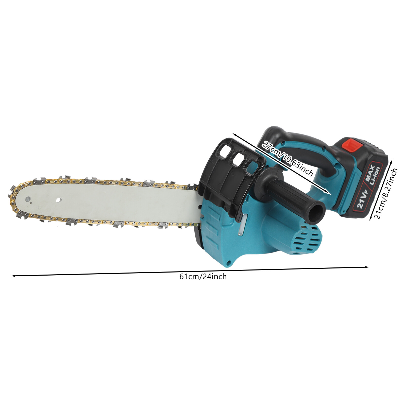 Package Included 1* Electric Chainsaw 1* Charger 1* English Manual 1* Carry Case 1* Lithium Battery Other Accessories for Assembly ✨✨✨ Welcome to my store! Have a nice day~ ✨✨✨ Welcom to yanqiuwangluo66 Description Our chainsaw is a high-performance power tool designed for outdoor work, garden pruning, wood processing and other scenarios. It is powered by advanced brushless motor technology and high-capacity lithium battery, featuring high efficiency cutting, lightweight and portable. This chainsaw is not only easy to operate, but also has low maintenance costs, making it suitable for professional users and home DIY enthusiasts. Key Features Made to Last: High-class nylon, ABS, manganese steel, and rubber materials and an exquisite electroplating process make this product sturdy, scratch-resistant , impact-resistant , and not easy to corrode and deform, ensuring a long service life. High Efficiency: Up to 1000W high power brushless motor provides strong power for the product, making its cutting speed up to 32.81ft/s, which greatly improves the working efficiency. Long Duration: 2600mAh high-capacity lithium battery makes it possible to use continuously for 1 hour on a single charge, meeting the needs of long-time operation. Precision Cutting: The 12-inch manganese steel saw chain is sharp and wear-resistant to ensure precise and efficient cutting, with a sawing diameter of up to 7.09-11.81in. In addition, you can also adjust the chain's looseness and tightness to make your cutting work more precise. High Safety: The product has built-in multiple protection functions such as overheating, overload, short circuit, etc. to ensure the safety of use. In addition, the safety lock on the handle makes it safer and more reliable for you to use. Easy to Carry: The included carrying case makes it easy for you to carry the product to the use site and for you to store it. Thoughtful Design: Manual oil injection design makes the product run smoothly and efficiently, improving cutting efficiency and accuracy. In addition, the cordless design makes the product lighter and more portable, providing more convenience for trimming work. Easy Assembly: The simple structure, complete accessories, and detailed instructions help you finish the installation quickly and use it in a short time. Details Sub-handle: It helps you to share the grip pressure and reduce fatigue. Protective Baffle: This design can effectively prevent you from being injured by debris and improve the safety of use. Air Vent: It effectively helps the machine to dissipate heat in time to prevent burning and prolong the service life of the product. Application This product can be used for outdoor work, garden pruning, woodworking, and more. It can be used for logging, pruning, etc. Specification Material: Nylon, ABS, Manganese Steel, Rubber, SK5 Color: Blue Process: Electroplating Power Source: Battery Powered Style: Modern Assembly Required: Yes Motor: Brushless Motor Plug Type: US Standard Input Voltage: 100-240V 50/60Hz 0.8A Output Voltage: 21V 1A Power: 1000W Battery: 2600mAh Lithium Battery(Included) Charging Time: 3-4 hours Continuity Time: About1 hour Chain Length: 30.48cm/12in Sawing Diameter: 18-30cm/7.09-11.81in Cutting Speed: 10m/32.81ft/s Product Size: 61*27*21cm/24.02*10.63*8.27in Package Size: 56*27*18cm/22.05*10.63*7.09in Gross Weight: 4.5kg/9.92lbs Net Weight: 4kg/8.82lbs Package Included 1* Electric Chainsaw 1* Charger 1* English Manual 1* Carry Case 1* Lithium Battery Other Accessories for Assembly Notes Please read the operating manual completely before use. And pay particular attention to the safety instructions included. Please wear protective measures such as goggles and gloves (not included) to ensure your safety when using the product. Please allow the slight color difference caused by the shooting light and 1-3cm error due to manual measurement, and make sure you do not mind before ordering. Payment Delivery details Terms of sales About us Contact us Payment We accept ebay payment 。 Fees such as import duties, taxes are not included in the item price or shipping costs. These charges are the buyer's responsibility. Delivery details Shipping: 2-9 working days to: USA Terms of sales We maintain high standards of excellence and strive for hundred percent customer satisfaction. Feedback is very important to us. We hope that you contact us immediately before you give neutral or negative feedback, so that we can address your concerns. It is impossible to address issues if we do not know about them! About us Your satis faction is our ultimate goal. We work hard to earn your trust and future business. Our certified technicians have tested each item before shipping. The unit comes with 1 year limited warranty on all manufacturing defects. a) If you receive a defective item, you may return it or ask for a discount. Please contact us within 14 days after you receive the package. b) What you returned must be intact and in its original packaging as re? u. Customer is responsible for shipping costs of the returned item. c) We will cover the cost of shipping back t with the shipping rate indicated in the registration page. We will send you a new unit or refund the full payment you paid. Thank you. Contact us Business Hour Business Hour: Monday To Friday: 8:30 AM to 5:00 PM (Beijing China time) Due to time zones, our reply to your questions may not be immediately. But within above working time, we will reply your email within 24 hours. If it's non-workdays, please kindly be patient and wait till Monday. Please contact us with ebay message. Please feel free to contact us if you have any questions. Monday To Friday: 8:30 AM to 5:00 PM (Beijing China time) Due to time zones, our reply to your questions may not be immediately. But within above working time, we will reply your email within 24 hours. If it's non-workdays, please kindly be patient and wait till Monday. Please contact us with ebay message. Please feel free to cont