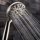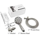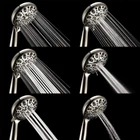 Number Of Settings: 6 spray settings including rain and massage Material: Made from brass, nickel, stainless steel and copper Number Of Jets: 1 jet provides a powerful shower experience Finish: Brushed nickel finish for a sleek and elegant look Style: Round shower head with a brass swivel ball bracket for easy installation