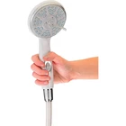 Products Deluxe Hand Held Shower Head, White, 1.25 Pound 's Handheld Shower Head is the perfect tool to help people retain their independence and shower without assistance Extra long 84" reinforced hose allows users to shower while seated to cope with injury, arthritis or other physical limitations Deluxe 5 settings create a spa-like experience tailored to your needs: Regular; Shower Spray; Massage; Water Drip and Shower Stop On/Off switch allows for water flow control Wall mounting holder included
