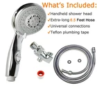 🚿【FITS ANY STANDARD SHOWER PLUMBING】: Universal connections allow the Handheld Showerhead Extension Massager by to easily fit any standard shower plumbing fixture. 🚿【FLEXIBLE AND EXTRA-LONG HOSE】: The stainless steel shower head hose is 6.5 Feet in length, allowing maximum flexibility and convenience. Spray down your pets, bath your baby and kids, or relax on a shower chair while using our extra-long hose handheld shower head conveniently. 🚿【5 SPRAY SETTINGS】: The versatile and detachable bath shower head features five spray modes, including Spray, Massage, Spray Massage,Power Rinsing Spray, Trickle. Make you enjoy the natural SPA at home. 🚿【ON/OFF SWITCH TO SAVE WATER 】: Add water saving ON/OFF pause switch, it’s really convenient especially for kids, adult, disabled, toddler, baby, pets bathing, water saving idea while shampooing your hair! 🚿【EASY INSTALLATION & TOOL-FREE CONNECTION】: No need to call a plumber. Installs in minutes with the universal connection which fits quickly and easily to any standard shower arm without tools needed. Includes all washers, plumber's tape, detailed instructions for reference.
