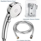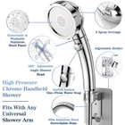 Packing listing: 1.Handheld shower head 2.59-inch stainless steel hose 3.Punch-free hook base 🛀【3 Spray Modes & ON/OFF Switch】 This handheld showerheads with hose and holder has 3 spray settings: Power aeration mode, pulsating mode, rain mode to meet different needs; Add water saving ON/OF pause switch, it’s really convenient especially for , adult, disabled, , baby, pets bathing, water saving idea while shampooing your hair! 🛀【High Pressure & Adjustable Head】- The rv shower head adopts 360 pinholes design, wide shower coverage even under low water pressure,makes the outlet holes smaller and denser then increasing the water pressure; The shower head is adjustable design for using flexible - (360°adj. horizontally , 45°adj. Vertically). 🛀【Standard Size Easy to Install】- Easy to clean and can be used as a nozzle(Flush the toilet, floor and etc.) with detachable design; Comes with a tools-free installation sticker holder, strong sturdy and easy to install - (NOTE: Before installing please 1. choose a proper height on the wall; 2. clean up the area and wait it dry completely, 3.stick it on the wall and press with hands). 🛀【Premium Materials】- The shower heads are made of high-class scratch resistant chrome plated ABS plastic, which is sturdy, heat insulation, No rusting, Please the eye, eco-friendly and lightweight(especially for ). 🛀【What You Get】- 1*Handheld shower head; 1*Universal G 1/2" stainless steel(304) hose(59in.); 1*Holder; 1*User instructions; 12 months money back or .If you have any question about our shower head, please feel free to us and we will serve you wholeheartedly.