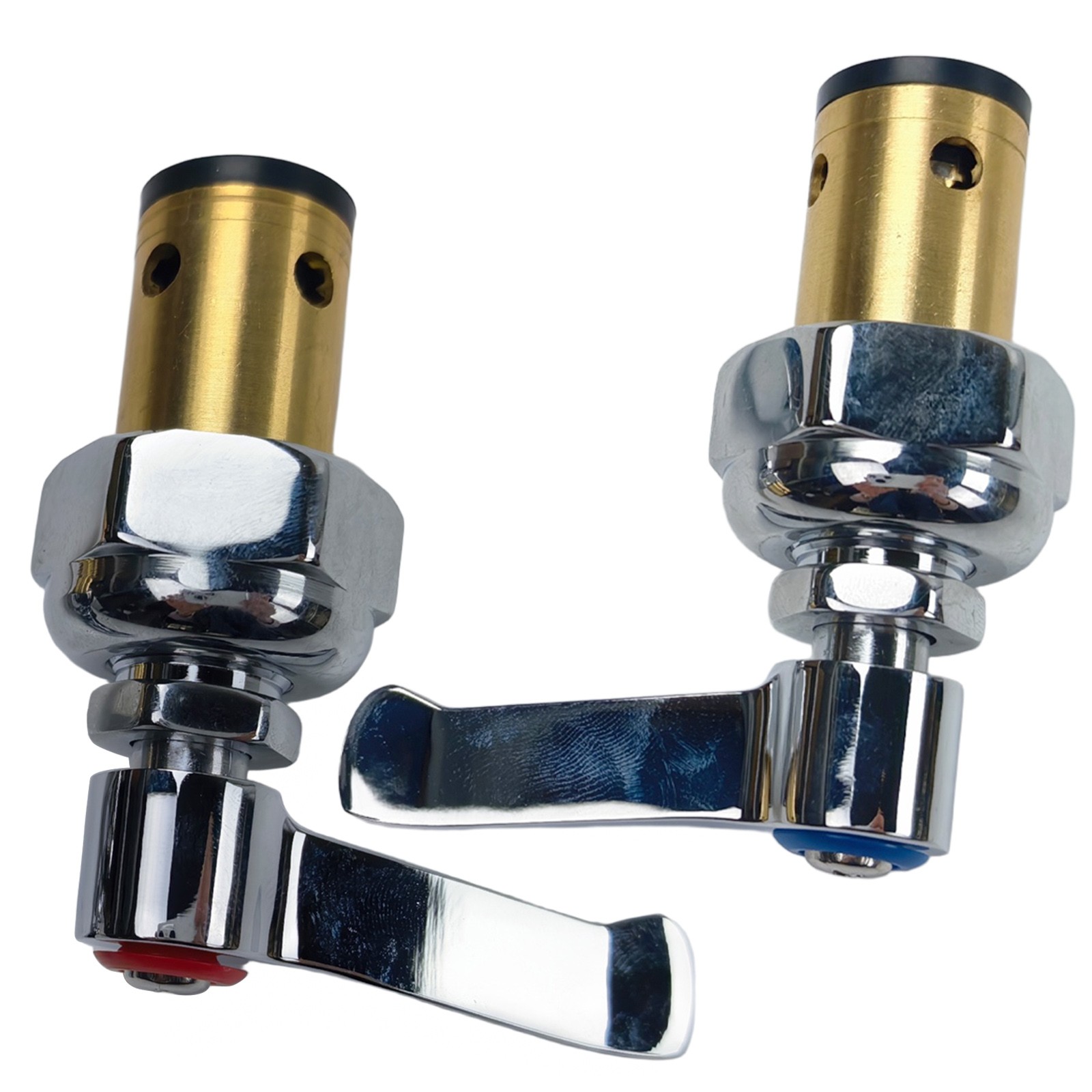 Handle Stem Assembly Fits for T&S Brass Faucets Replace 002713-40 Blue,Red Product description cold side handle stem assembly replace 002713-40, hot side handle stem assembly replace 002714-40 The blue cold and red hot side spindle assembly valve is compatible with T&S brass all faucets, 3-1/8-Inch height, quarter turn cartridge with spring check