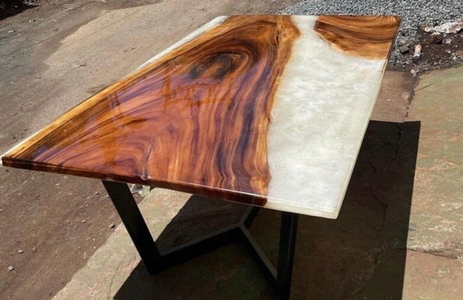 Kindly note: Any accessories, chairs, bench, and legs shown in the picture are NOT included in the given prices. If you want legs, you will need to pay an additional fee. Please contact me if you have any queries." "Note: Any customs duties and other levies in the destination country are the responsibility of the buyer." "Kindly note: Raw wood is used in its natural form and shape to make the table. The table shown in the photos has already been purchased, so the actual product may vary from the picture shown." Elevate your home decor with our exquisite Epoxy Wooden Table Top, a true masterpiece of craftsmanship. Each table top is a stunning fusion of natural wood and mesmerizing epoxy resin, creating a one-of-a-kind work of art that will become the focal point of any room. Our meticulous process begins with hand-selected, sustainably sourced wood that is skillfully cut and shaped to preserve its unique character, whether it's a rustic live edge or a sleek, modern design. The wood is then expertly sealed to ensure durability and longevity. But what truly sets our Epoxy Wooden Table Top apart is the mesmerizing epoxy resin infusion. Our artisans carefully pour and sculpt the resin to create mesmerizing rivers, waves, or abstract designs that enhance the wood's natural beauty. You can choose from a wide range of colors and patterns to suit your style and taste. The result is a seamless blend of nature and artistry, where the warmth of wood meets the contemporary allure of epoxy resin. The glossy finish not only enhances the table's aesthetics but also provides a smooth, durable surface that's easy to clean and maintain. Whether you're looking for a statement piece for your dining room, a unique coffee table, or a conversation starter in your office, our Epoxy Wooden Table Top is designed to impress. It's perfect for both classic and modern interiors, adding a touch of sophistication and elegance to your space. Each table top is handcrafted with precision and attention to detail, ensuring that you receive a high-quality piece of functional art. Plus, we offer customization options, allowing you to choose the wood species, size, and epoxy resin design that best suits your vision. Bring the beauty of nature and the allure of contemporary design into your home with our Epoxy Wooden Table Top. Experience the artistry of our process and transform your living space into a haven of style and sophistication. Upgrade your home today with a piece that's not just a table but a work of art. Explore our selection and discover the perfect Epoxy Wooden Table Top to complement your unique style.