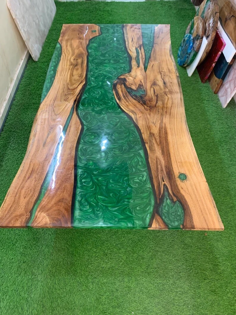 Our epoxy tables are custom-made, and we strive to use the same type of wood as depicted in our advertising pictures. However, it is not always possible to find an exact match, which may result in slight variations in the epoxy color and wood grain pattern. It's important to keep in mind that the table you receive may not be an exact replica of the advertising picture. We ensure that our clients are informed of every step of the process, from the selection of the wood to the final finish of the table. We keep our clients up-to-date throughout the process to ensure transparency and avoid any misunderstandings. Additionally, our price includes air delivery right to your doorstep via DHL/Fedex/UPS and insurance protection. Please note that you may be responsible for paying any applicable tax and duty on delivery. If you have any concerns or doubts, we highly recommend addressing them before making a purchase. Clearing any doubts beforehand will help avoid any issues and ensure a smooth buying process. It's important to note that any accessories depicted in the advertising images, such as knives, chairs, or lighting, are not included with the product and are only used for photography purposes. Additionally, please keep in mind that the price of the product does not include any type of legs. If you would like legs included, we can provide them for an additional cost. We recommend addressing any questions or concerns before making a purchase to avoid any misunderstandings. Made To Order....