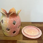 Ceramic Pottery Candle Holder Lantern Art Deco MOD Pink Yellow Handmade Eclectic Weight: 1.9lb Size of item: Measurements are in the photos Condition: Good used condition. The item will be shipped as shown in all of the photos so please see EVERY photo for the exact item description. This is a preowned item with normal signs of wear. There is no notable damage or stains. Handmade Ships from a smoke free home! Please see all photos for exact item condition Thanks for checking out my store! All items are shipped within two business days. Make a bundle to save on shipping cost. Wash to Wear