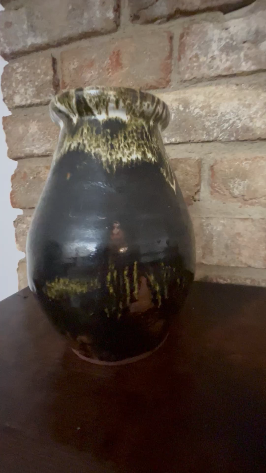 This Artisan Studio Pottery Stoneware Vase is a unique and handcrafted piece measuring 8 inches tall. Made in North America, specifically the United States, this drip glazed vase features a multicolor design with an all-over pattern. Signed by the artist, this original creation showcases a mainly glossy finish, perfect for adding a touch of nature and artistry to any space. Perfect for those who appreciate handmade pottery and artistry.