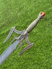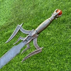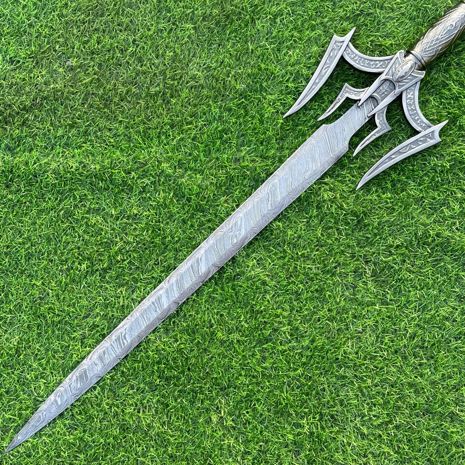 EXCLUSIVE HANDCRAFTED Damascus Steel Blade: A Legendary Sword for the Modern Warrior, Medieval Sword Swords Battle Ready, Hand Forged Sword, Damascus Sword, Long Sword, Viking Sword, Sword, Wedding Gift, With sheath Product Details: Overall Length: Approximately 34.0"inches (Approx.) Blade Material: Genuine Damascus Steel Blade Hardness: 54-58 HRC Handle Material: Pewter Size Verification: To help you easily determine the size, we've included images with a scale for precise dimension reference. Thank you for your understanding. We appreciate your consideration. Included Accessories: Sheath -excellent husband wife gift -Wedding gift -Father's Day gift -Mother's Day gift -Birthday Gift -Groomsmen gift -Christmas gift -Luxury Gifts For Men -Anniversary gift for husband -Thanksgiving Gift For International Customers: We kindly advise our international customers to familiarize themselves with their country's regulations prior to making a purchase. If customs in your region request customs duties, please be prepared to cover these costs. Regrettably, we cannot assume responsibility, nor issue refunds in such cases. Our Damascus Steel Creation Process: At our workshop, we take immense pride in crafting authentic Damascus steel knives that surpass mere acid etching. Here's an overview of our Damascus steel-making process: 1. Material Selection: We meticulously combine 1095HC and 15N20 nickel carbon steel for our blades. 2. Layering: The chosen steels undergo repeated heating and folding to achieve a remarkable 384 layers. 3. Acid Burn: Following the layering process, the blade is treated with acid, revealing the brilliant nickel shine and a dark gray hue in the high carbon steel, thereby showcasing the stunning Damascus patterns. 4. Blade Finishing: Concurrently, we expertly sharpen the blade's edge, transforming the acid-treated edge into a striking satin finish. Our unwavering commitment to preserving the authenticity and craftsmanship of Damascus steel ensures that each knife in our collection showcases intricate layers and delivers exceptional performance. AGE LIMITATION: Please note that we exclusively sell knives to individuals who are 18 years of age or older. Additional Details: Leather Sheath (if pictured): Rest assured, this item comes with a superior-quality, sheath. Crafted with meticulous hand-tooling and stitching, it exemplifies fine craftsmanship and is designed for exceptional durability. The added stitching ensures it withstands years of demanding use, providing reliable protection for your knife throughout its lifetime. Care and Maintenance: When necessary, use a Diamond Wet Stone or a superior sharpening tool to maintain a 20-degree blade edge. After use, clean the item with soap and water, ensure thorough drying, coat it with gun oil, and store it separately from the sheath. Leather absorbs moisture from the air and can lead to blade rust if stored improperly. Customer Feedback: Your satisfaction and feedback are of utmost importance to us. We genuinely appreciate your positive reviews! When assessing shipping time, please consider international transit. Your recognition bolsters our confidence to enhance our services. If you encounter any issues with your order or product dissatisfaction, please reach out to us first. We are committed to resolving any concerns to your satisfaction and kindly request you not to leave neutral or negative feedback. Payments & Returns: All accepted eBay payment methods are available for this purchase. Our return policy typically extends to 14 days. Shipping and Handling: We offer free shipping on all our products (In the USA) Tracking Info: The buyer will receive the tracking number via email (if available). You can also track the shipment in the "Order Details" section on eBay. USPS UPS DHL updates tracking information nightly (if available). Contact: Feel free to contact us anytime via eBay messages. We are dedicated to responding to your inquiries within 24 hours and providing the best possible assistance.
