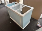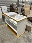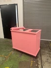 Bar is 48”x36”x24” You choose yo to two colors All carts come with wheels Three large cutouts Umbrella hole Divider and two shelves Made in Texas