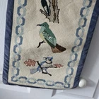 This handmade Birds Needlepoint Cross Stitch Wall Hanging features intricate needlepoint embroidery on a velvet border, creating a beautiful and unique piece for your home decor. Measuring 50x12 inches, this wall hanging showcases the craftsmanship and attention to detail that comes from handmade work. Perfect for adding a touch of artistry to any room, this cross stitch piece adds a charming and elegant touch to your space. Some scratching on wooden ends. Velvet backing. See photos for imperfections sold as is