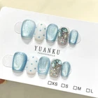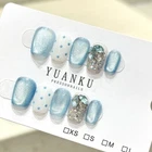 Shape: Coffin Country/Region of Manufacture: China Suitable For: Nail Art Brand: Unbranded Effect: Shimmer Type: Press-On Nails Color: Blue Theme: Sparkle Nail Size: Short Features: Full Cover, Glue Included, Self-Adhesive