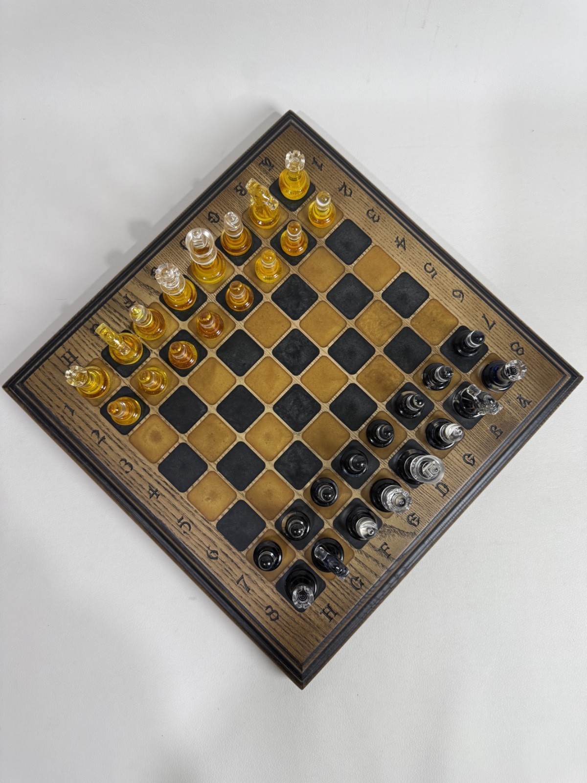 ʼ ♟️ Luxury Handmade Chess Set – Wood & Epoxy Resin ♟️ This premium chess set is a unique handcrafted piece made from natural wood combined with epoxy resin. Each square on the board is filled with resin, creating a smooth and elegant playing surface. The chess pieces are also crafted from epoxy resin, giving them a modern glass-like appearance that perfectly complements the wooden board. 🔹 Features: • Handmade from natural solid wood • Epoxy resin filled board squares • Unique resin chess pieces (glass-like design) • Smooth polished surface • Elegant and modern style 📏 Size: • Board: 33 x 33 cm 🎁 Perfect for: • Luxury gifts • Home decor • Chess lovers • Collectors 📦 Package includes: • Wooden chess board • Full set of resin chess pieces 🚚 Shipping: • Fast worldwide shipping • Carefully packed for safe delivery ⚠️ Note: Each item is handmade, so wood grain and resin patterns may slightly vary – making every set truly one of a kind.