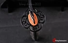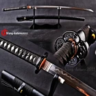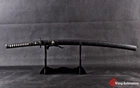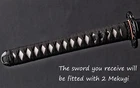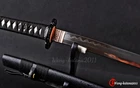 DESCRIPTION: Number: LQ151250 Swordsmith: 劉徐 Package: 1 sword + 1 bag + 1 certificate Bo-hi: No blood groove,can be added for free Thickness: 0.7cm/0.28'' Width: 3.2cm/1.26'' Blade: 70cm/27.6'' Tsuka: 26cm/10.24'' Overall: 103cm/40.6'' Hardness(HRC): 60 Hamon: Real natural hamon , caused by clay tempering process. Material: 百炼钢, Damascus folded T10 High carbon steel Sharpness: After testing, professionals can use it to cut bamboo or A4 paper Fittings: Brass habaki & seppa + Alloy tsuba & fuchi & kashira & Menuki + Genuine Shark rayskin + Japanese synthetic silk ito Handle: Full-tang , 2 meguki fix the handle vertically, very firm. Craft: Hand folded 15 times (32768 layers) , clay tempered , Water quenching treatment, traditional hand-polishing, etc . Ancient quenching: Modern vacuum heat treatment can meet the hardness requirements of most swords, but the traditional quenching method has better effect, can soften the medium strip steel, and the hardness is higher. Manual grinding: Using the unique bright stone of Longquan Town, hand grinding, very test sword casting skills and technology, grinding out the pattern effect is special texture! Tsuba & Fuchi & Kashira & Habaki Saya Additional Service About us Delivery details Tsuba & Fuchi & Kashira & Habaki Alloy Tsuba Iron Tsuba ( extra $10) Brass Set ( extral $50 ) Alloy Fuchi & Kashira Habaki TSUKA-ITO & SAGEO Tsuka-ito is the wrapping of the tsuka and sageo (下緒 or 下げ緒) is a hanging cord that is passed through the hole in the kurigata (栗形) of a Japanese sword's saya. SAMEGAWA Samegawa(鮫皮)is the ray or shark skin wrapping of the tsuka (handle/hilt). Saya Please contact us before placing an order to see if there is any stock available, as well as any additional charges. OX Horn Saya Additional Service It's free for engraving English words, Chinese Characters and Japanese Kanji , etc. You need pay extral $20-30 for engraving patterns. Hamon We can add or remove the machine-made wavy hamon for free. Bo-hi ( Blood Groove) Usually thought be used for bloodletting only. It is also used to lighten the weight of the sword. We can add or remove Bo-hi for free Sharpness Most of our blades are sharp. We can also make the blade unsharpened for free if you require. Colored Blade If you want to change to a different color blade, please contact us before purchase. Matching Swords Set If you buy one katana, we can make a matching Wakizashi or Tanto for you. The price varies from different swords. Please contact us if you need make custom matching set. About us We have our own sword-casting factory. The factory is located in Longquan, a small town with a long history of sword-casting in China. Most of the famous Swords in China are made there. Rich raw materials, skilled technology, traditional sword casting technology from generation to generation. Manual production really takes a lot of time. We will prepare most products in advance ,and arrange delivery within about a week. However, sometimes the delivery time is delayed due to weather or raw materials,etc. we hope to get your understanding. Feel free to contact us to inquire about the status of your order. Each handmade sword is unique. Our swords are great for gifts or for your own collection. Our swordsmithing master makes every sword attentively, hope you can feel our sincerity. We will also give you the best customer service, any questions please feel free to contact us. Delivery details a) Import duties, taxes and charges are not included in the item price or shipping charges . These charges are the buyer’s responsibility. b) If you do not receive the package, or the package is damaged during transportation. We'll take care of it. Please feel free to buy. c) If it is mentioned in the product description that the package includes the sword bag or sword holder , the style will be random. The sword holder or sword bag on the ebay picture is the props we use for shooting. If you really like a style, please contact us before buying. d) If you have any problem after recieve the package (wrong size, wrong style, etc.). We always provide you with the best after-sales service. Please give us a chance to help you before you give us a bad feedback . Thank you very much!