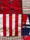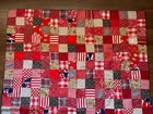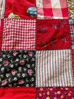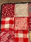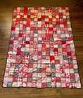 Handmade Cotton Fabric Patchwork Squares Quilt Topper Rick Rack Edge 52" x 72" Nicely stitched piece in very good condition. Has a few discolored spots - see last two photos. Measures approximately 52 inches wide x 72 inches long.