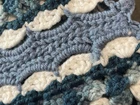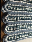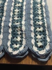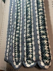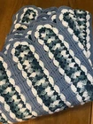 Knitted Throw Blanket Afghan 60”x60” Scalloped Edge Blues White Handmade. Condition is Pre-owned. Shipped with USPS Ground Advantage.