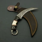 beautiful handmade damascus huntign karambit knife handle made of camel bone Vision & Mission of SuperSharp Steel total lenght 9" blade lenght 4.5" handle lenght 4.5" comes with leather sheath SuperSharp Steel was founded in 2015. We are manufacturers of Damascus Steel, Stainless Steel, D2, High Carbon Steel Knives and Folding Knives. Our Blades contain 1095 & 15N20 High carbon tool steel and hardness of 58 to 60 HRC after heat treatment. Our Products are hand made by skilled artisans and craftsmen, which reflects excellence in itself. Our unmatched quality of products set us ahead from our competitors in the international market. All the products are delivered within the stipulated time frame and checked by our quality experts to ensure complete satisfaction of our customers. Quality Control: From the selection of the finest raw materials to exacting and rigorous steps taken to maintain quality control during each phase of production, there is a lot of craftsmanship that has gone into every SuperSharp Steel knife, transforming a simple cutting task into a uniquely pleasurable experience each and every time. Rockwell testing equipment (HRC) is used to maintain strict control over the all important hardening process. Resistance to corrosion and cutting edge superiority are entirely dependent on this precise heat treatment process. To ensure optimum performance, our sharpness testing machine is used on every knife blade that we manufacture, guaranteeing the best possible performance with every knife. Throughout the production process, proper grinding and honing angles are continuously monitored with a laser angles control unit. The quality of steel: Quality knives require a very specific grade of steel to insure proper forging, tempering and hardening. All SuperSharp Steel knives are made of the finest quality steel. Our commitment to quality insures durability, strength and longevity of each blade that is made. The forging process the way which the knife is forged and tempered is as important to the process as the quality of the steel that is used, Forging is the process of heating steel to a red-hot state prior to applying a powerful blow to form a forged blank. Variations: As all Damascus Steel patterns are made particularly in proper way but it is not possible to get the same layers compaction all the time, So keep in your mind when you purchase our Damascus knives there may not be exactly as shown in Photos but you will always find a quality knife. Questions If you have any questions feel free to send us message we aim to answer all questions within 12 hours. Feedback As we are confident what we make, however If you are not satisfied with our services please contact us before leaving any negative or neutral feedback. We will resolve all issues as quickly as possible. Disclaimer: We are not responsible for any injuries associated with the use of our tools. Our products are intended for legal use only by responsible buyers. Therefore, we will not sell our products to anyone under the age of 18. Before bidding please check your country laws as some countries Custom don't allow this. If your purchase is held by Custom Authorities in your country/State we will Not be responsible for that and no refund will be issued. Complimentary gift messages *Gift wrapping service available for minimal additional fee ADD ONS: *Custom orders for 10 or more pieces. You can choose & submit your own handle or design. LIFETIME WARRANTY No premium knife is complete without a lifetime warranty; our masterpiece knife is fully covered for life, We do sell wholesale, please contact us for special discounts on bulk orders. FEEDBACK POLICY: YOUR FEEDBACK IS VERY IMPORTANT FOR US, IF THEIR IS ANY KIND OF PROBLEM PLEASE GIVE US OPPORTUNITY TO SORT THE ISSUE