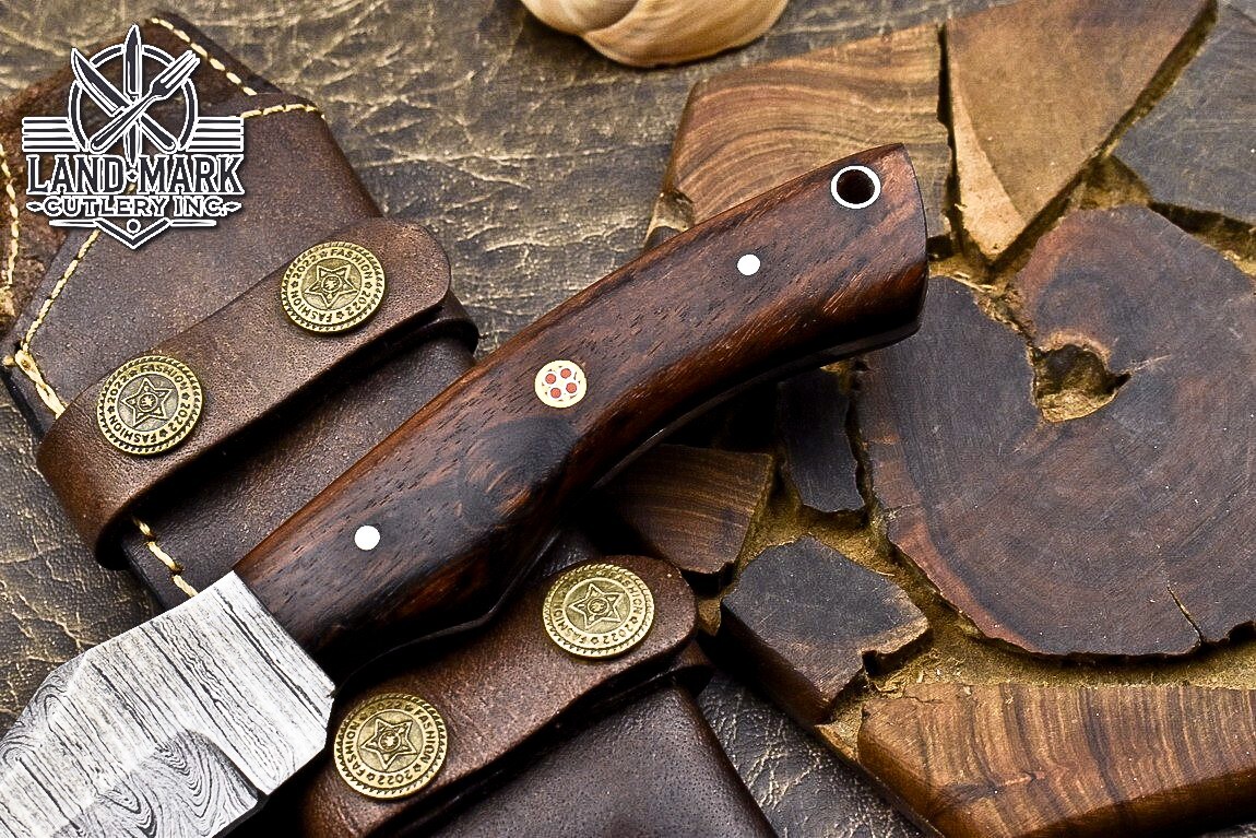 Custom Hand Made DAMASCUS STEEL HUNTING KNIFE WITH ROSE WOOD HANDLE We offer a shipping discount for More then one purchased . And discount will be apply on combine invoice, Discount will not apply on separate payment. ITEM DETAILS OVER ALL LENGTH 8.0 inches long (Approx) HANDLE LENGTH 4.0 inches long (Approx) BLADE LENGTH 4.0 inches long (Approx) BLADE HARDNESS 58-60 HRC Which Holds The Sharp Edge For Long Time. HANDLE ROSE WOOD COVER LEATHER SHEATH This Awesome custom made KNIFE has a nice hand forged with the combination of 4340 & 1080 steel. HOW OUR DAMASCUS IS MADE: All our Damascus is real and not just an acid etch. Damascus is a mixture of 1080HC and 4340 nickel carbon. You heat them up together and then fold the bar over and over to get the desired layers, ours are 396 layers. Then you burn the blade in acid, and it turns the nickel satin color and the high carbon turns blackish gray. This is how the layers are exposed to show the layers of the new steel created coined "Damascus". All Damascus is acid etched to show the layers. If you high polish the metal it will be shinny satin like all steels. Only after you burn the sides of the blade with acid do you see the layers of the two steels. Makes sense? After we make our knives we high polish the handles and put an edge on the blade. The high polishing buffs off the acid burned layer of the handle, and the blade edge is sharpened and the acid burned edge becomes satin. You can re-burn the tang of the blade near the handles and the edge of the blade and it will show the layers once more. All our knives are hand made, durable and unique ***** YOU WILL RECEIVED THE SAME KNIFE Qality Standards Our Damascus blades are made from high quality non-stainless steels which rival or exceed any Damascus blade made from the 10 series with 4340. Our Damascus combination has taken years to perfect and has been tested under a variety of application which will offer professional performance in categories of toughness, strength (lateral stress) and edge honing and holding ability. In a 5 spot Rockwell test our blades will average near or close to 58 which offers a perfect balances between its toughness and strength.Our blades due to carbon content need to be regularly treated with wax and/or 3 in 1 oil to maintain its superior quality. Questions if you have any question feel free to send us message we aim to answer all questions within 24 hours Feedback If you are not satisfied with our service please contact us before leaving any negative or natural feedback. We will resolve all issues as quickly as possible. Disclaimer We are not responsible for any injuries associated with the use of our tools. Our products are intended for legal use only by responsible buyers. Therefore, we will not sell our products to anyone under the age of 18. Before bidding please check your country laws as some countries Custom don't allow this. If your purchase is held by Custom Authorities in your country/State we will not be responsible for that and no refund will be issued Shipping We offer a 20% shipping discount for More then one purchased . And discount will be apply on combine invoice, Discount will not apply on separate payment We ship within 24 hours after receiving complete payment but this can be delayed due to week ends or Governments and Religious Festivals . . This is beyond our control and we apologize for this inconvenience. Precautions Our Tools are very sharp so open and use them very carefully We are not responsible for any injuries associated with the use of our tools Tips to Care knife 1. NEVER STORE YOUR KNIFE FOR LONG TIME IN LEATHER SHEATH. 2. LEATHER CAN ABSORB WATER, WHICH WILL RUST THE KNIFE. 3. ALWAYS CLEAN THE BLADE AFTER USING WITH OIL OR WAX