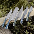 Handmade Damascus Steel 5 PCS Chef Knife set Professional Kitchen Knives Personalized Groomsman Anniversary Gift Housewarming Chef gifts Personalized Gift ,Customized Gift ,Boyfriend Gift ,Birthday Gift ,Gift for Men ,Father's day Gift ,Anniversary Gift ,Groomsman Gift ,Husband Gift ,Halloween Gift ,Thanksgiving Gift, Valentines day Gift ,Christmas Gift, Mother's Day Gift, Camping Knife Gift, EDC Knife Gift, Customized Gift, Folding Knife, Pocket Knife, Best Man Gift, Back Lock Knife Item Description Full Length : 12-11-10-9-8" Blade Length : 7-6-5-4-3" Handle Length : 5" Handle Material : Blue Multicolor Pakka wood Beautiful Handle file work on the spine Razor Sharp cutting Edge come with Leather roll kit ------------------------------------------------------------------------------------ BEST Folding/Pocket Gift for Boyfriend Men BAMSI Blades Authentic Damascus Straight Razor made of 100% Hand Forged Damascus Blade and is the result of hours of work, Composed of 1075, 15N20 high carbon steel . Comfortable Handle: All our Items are designed with detail attention to offer comfortable grip and control of hand, making it easier to hold and use. A masterpiece gift for your loved ones, to spread happiness and joy. We do not sell knives to anyone who is underage of 18 Years. ---------DISCLAIMER ----------- After receiving the item if you are not satisfied with the product and services please do not open a case and put -ve Review on the site . You must contact us we will try our best to solve your Problem ASAP. Thank you Customs & Import Duty Policy (Listing Note) Important Notice for US Customers: Our products are shipped from Pakistan. Please note that import duties, customs charges, or taxes may apply when your order arrives in the USA. These fees are not included in the product price or shipping cost and must be paid by the buyer directly to US Customs or the courier service. We do our best to minimize these charges by declaring accurate values. However, the final decision regarding duties and taxes is made by US Customs. Buyer Responsibility: By placing an order, you agree to pay any applicable import duties or taxes charged at the time of delivery. If you refuse to pay the customs duty and the parcel is returned to us, shipping costs and return fees will be deducted from your refund. If the parcel is abandoned due to unpaid duty, no refund will be issued. We highly recommend checking your country’s customs rules and charges before placing an order. Thank you for your understanding and cooperation!