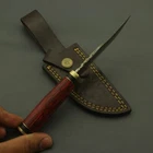 Beautiful Handmade Hunting Knife Designed with superb Handle Modern pattern welded Damascus steel, 512 layers of hard higher carbon steels are welded to many layers of soft lower carbon steels. The pattern is designed, the blade is forged-welded, twisted, drilled, flattened, grounded, and forge-welded some more. A note about the handle. wood is a natural material and will have some variances in color. Thank you!! Behold the captivating masterpiece that is our Radiant Handmade Damascus Steel Knife with Enchanting Bolster and Custom Sheath. Immerse yourself in the enchantment of this exquisite blade, meticulously crafted to perfection with the finest materials and unparalleled craftsmanship. The heart of this extraordinary knife lies in its exceptional Damascus steel blade. Hand-forged by skilled artisans, the blade showcases the mesmerizing patterns of the Damascus technique, created by carefully layering and manipulating different types of steel. The result is a blade with striking visual appeal, as the intricate waves and ripples dance across its surface, making each knife truly one-of-a-kind. To complement its beauty and ensure its protection, this captivating knife comes with a custom sheath. Expertly tailored to fit the knife perfectly, the sheath is a testament to fine craftsmanship and attention to detail. It not only safeguards the blade but also adds an extra touch of sophistication and luxury to the ensemble. Manufactured with ultra-sharp hand forged Damascus steel cutting core at HRC58-60 hardness, this USA knife comes with unrivaled performance and incredible edge retention; Damascus steel outperforms high carbon steel in durability and is easier to sharpen as mix of high chromium steel enhance the other alloying elements. Perfect for hunting, fishing, hiking, camping, boating, backpacking, or any other outdoor adventure. It is also a key item to add to your survival tactical gear! FEATURES & SPECIFICATIONS Total Length: 8.0" Blade length: 4.0" Handle Length : 4.0" Blade Material: Damascus Blade Hardness: 50-58HRC on Rockwell scale Handle Material: Rose Wood Sheath: Genuine Leather Care Instructions: Keep the blade dry after each cleaning. Warning: Take care when removing product from packaging. Keep fingers clear of blades. Store away from children. We do sell wholesale, please contact us for special discounts on bulk orders. FEEDBACK POLICY: YOUR FEEDBACK IS VERY IMPORTANT FOR US, IF THEIR IS ANY KIND OF PROBLEM PLEASE GIVE US OPPORTUNITY TO SORT THE ISSUE