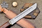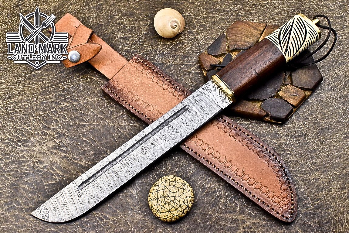 Custom Hand Made DAMASCUS STEEL HUNTING BOWIE KNIFE WITH ROSE WOOD & BONE CLIP HANDLE We offer a shipping discount for More then one purchased . And discount will be apply on combine invoice, Discount will not apply on separate payment. ITEM DETAILS OVER ALL LENGTH 14.0 inches long (Approx) HANDLE LENGTH 5.0 inches long (Approx) BLADE LENGTH 9.0 inches long (Approx) BLADE HARDNESS 58-60 HRC Which Holds The Sharp Edge For Long Time. HANDLE ROSE WOOD COVER LEATHER SHEATH This Awesome custom made KNIFE has a nice hand forged with the combination of 4340 & 1080 steel. HOW OUR DAMASCUS IS MADE: All our Damascus is real and not just an acid etch. Damascus is a mixture of 1080HC and 4340 nickel carbon. You heat them up together and then fold the bar over and over to get the desired layers, ours are 396 layers. Then you burn the blade in acid, and it turns the nickel satin color and the high carbon turns blackish gray. This is how the layers are exposed to show the layers of the new steel created coined "Damascus". All Damascus is acid etched to show the layers. If you high polish the metal it will be shinny satin like all steels. Only after you burn the sides of the blade with acid do you see the layers of the two steels. Makes sense? After we make our knives we high polish the handles and put an edge on the blade. The high polishing buffs off the acid burned layer of the handle, and the blade edge is sharpened and the acid burned edge becomes satin. You can re-burn the tang of the blade near the handles and the edge of the blade and it will show the layers once more. All our knives are hand made, durable and unique ***** YOU WILL RECEIVED THE SAME KNIFE Qality Standards Our Damascus blades are made from high quality non-stainless steels which rival or exceed any Damascus blade made from the 10 series with 4340. Our Damascus combination has taken years to perfect and has been tested under a variety of application which will offer professional performance in categories of toughness, strength (lateral stress) and edge honing and holding ability. In a 5 spot Rockwell test our blades will average near or close to 58 which offers a perfect balances between its toughness and strength.Our blades due to carbon content need to be regularly treated with wax and/or 3 in 1 oil to maintain its superior quality. Questions if you have any question feel free to send us message we aim to answer all questions within 24 hours Feedback If you are not satisfied with our service please contact us before leaving any negative or natural feedback. We will resolve all issues as quickly as possible. Disclaimer We are not responsible for any injuries associated with the use of our tools. Our products are intended for legal use only by responsible buyers. Therefore, we will not sell our products to anyone under the age of 18. Before bidding please check your country laws as some countries Custom don't allow this. If your purchase is held by Custom Authorities in your country/State we will not be responsible for that and no refund will be issued Shipping We offer a 20% shipping discount for More then one purchased . And discount will be apply on combine invoice, Discount will not apply on separate payment We ship within 24 hours after receiving complete payment but this can be delayed due to week ends or Governments and Religious Festivals . . This is beyond our control and we apologize for this inconvenience. Precautions Our Tools are very sharp so open and use them very carefully We are not responsible for any injuries associated with the use of our tools Tips to Care knife 1. NEVER STORE YOUR KNIFE FOR LONG TIME IN LEATHER SHEATH. 2. LEATHER CAN ABSORB WATER, WHICH WILL RUST THE KNIFE. 3. ALWAYS CLEAN THE BLADE AFTER USING WITH OIL OR WAX