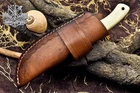 Custom Hand Made DAMASCUS STEEL HUNTING TRACKER KNIFE WITH MASLA SHEET AND BONE BOLSTER HANDLE We offer a shipping discount for More then one purchased . And discount will be apply on combine invoice, Discount will not apply on separate payment. ITEM DETAILS OVER ALL LENGTH 9.0 inches long (Approx) HANDLE LENGTH 4.5 inches long (Approx) BLADE LENGTH 4.5 inches long (Approx) BLADE HARDNESS 58-60 HRC Which Holds The Sharp Edge For Long Time. HANDLE BONE AND SHEET COVER LEATHER SHEATH This Awesome custom made KNIFE has a nice hand forged with the combination of 4340 & 1080 steel. HOW OUR DAMASCUS IS MADE: All our Damascus is real and not just an acid etch. Damascus is a mixture of 1080HC and 4340 nickel carbon. You heat them up together and then fold the bar over and over to get the desired layers, ours are 396 layers. Then you burn the blade in acid, and it turns the nickel satin color and the high carbon turns blackish gray. This is how the layers are exposed to show the layers of the new steel created coined "Damascus". All Damascus is acid etched to show the layers. If you high polish the metal it will be shinny satin like all steels. Only after you burn the sides of the blade with acid do you see the layers of the two steels. Makes sense? After we make our knives we high polish the handles and put an edge on the blade. The high polishing buffs off the acid burned layer of the handle, and the blade edge is sharpened and the acid burned edge becomes satin. You can re-burn the tang of the blade near the handles and the edge of the blade and it will show the layers once more. All our knives are hand made, durable and unique ***** YOU WILL RECEIVED THE SAME KNIFE Qality Standards Our Damascus blades are made from high quality non-stainless steels which rival or exceed any Damascus blade made from the 10 series with 4340. Our Damascus combination has taken years to perfect and has been tested under a variety of application which will offer professional performance in categories of toughness, strength (lateral stress) and edge honing and holding ability. In a 5 spot Rockwell test our blades will average near or close to 58 which offers a perfect balances between its toughness and strength.Our blades due to carbon content need to be regularly treated with wax and/or 3 in 1 oil to maintain its superior quality. Questions if you have any question feel free to send us message we aim to answer all questions within 24 hours Feedback If you are not satisfied with our service please contact us before leaving any negative or natural feedback. We will resolve all issues as quickly as possible. Disclaimer We are not responsible for any injuries associated with the use of our tools. Our products are intended for legal use only by responsible buyers. Therefore, we will not sell our products to anyone under the age of 18. Before bidding please check your country laws as some countries Custom don't allow this. If your purchase is held by Custom Authorities in your country/State we will not be responsible for that and no refund will be issued Shipping We offer a 20% shipping discount for More then one purchased . And discount will be apply on combine invoice, Discount will not apply on separate payment We ship within 24 hours after receiving complete payment but this can be delayed due to week ends or Governments and Religious Festivals . . This is beyond our control and we apologize for this inconvenience. Precautions Our Tools are very sharp so open and use them very carefully We are not responsible for any injuries associated with the use of our tools Tips to Care knife 1. NEVER STORE YOUR KNIFE FOR LONG TIME IN LEATHER SHEATH. 2. LEATHER CAN ABSORB WATER, WHICH WILL RUST THE KNIFE. 3. ALWAYS CLEAN THE BLADE AFTER USING WITH OIL OR WAX