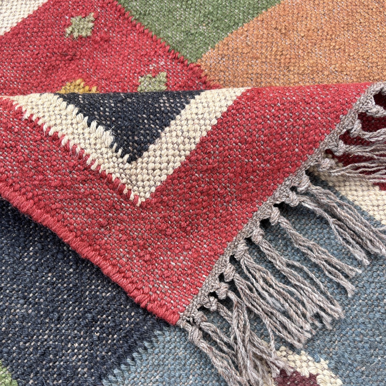 Add warmth and elegance to your space with this handmade wool and jute rug, crafted using age-old traditional weaving techniques. Every piece is created on a loom by skilled artisans, ensuring exceptional quality and attention to detail. ✔️ Premium Wool & Jute Blend – Made with strong natural wool and jute fibers for exceptional durability, rustic charm, and long-lasting beauty. ✔️ Reversible Design – Both sides feature the exact same pattern, giving you double the use and value. ✔️ Natural Dyes – Colors are rich, eco-friendly, and completely washable. No color bleeding or fading during washes. ✔️ Flat Weave & Fine Craftsmanship – Lightweight yet tightly woven, perfect for both modern and traditional décor. ✔️ Custom Orders Welcome – We can create this rug in any size or color as per your requirements. 📌 Note: If you prefer your rug without tassels or fringes, simply inform us. We will customize it for you. This rug is more than just a floor covering—it’s a handcrafted masterpiece designed to beautify your home. Perfect for living rooms, bedrooms, or any space that needs a touch of artisanal charm.