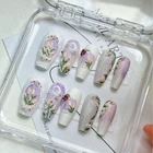 Handmade Flowers 3D Painting False Nail Long Coffin Press on Nail for Nail Art