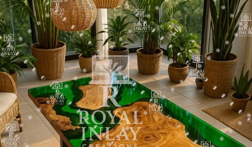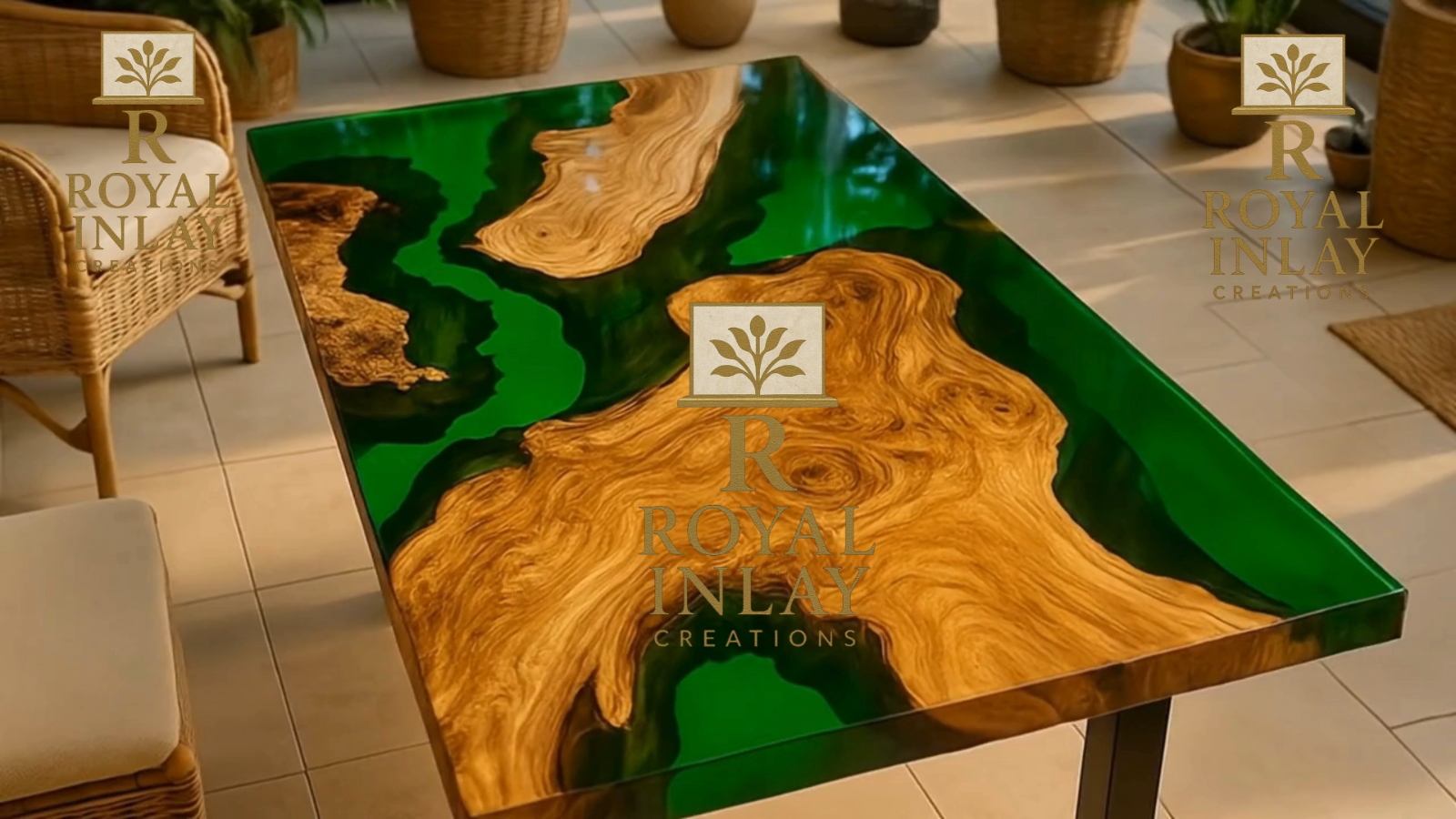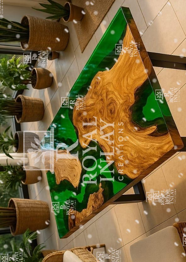 Handmade Green Epoxy River Table β Live Edge Wood Resin Dining Accent Add an earthy-modern charm to your space with this handcrafted green epoxy and wood river table. Featuring natural live edge wood embedded in translucent emerald green resin, this table blends rustic soul with contemporary flair. Ideal as a striking dining table, patio centerpiece, or office showpiece. πΏ Product Features: Materials: Premium hardwood slab + high-gloss green epoxy resin Design: River-style layout with live-edge grain running naturally through the center Base: Sturdy metal frame in matte black finish Finish: Resin polished to a glassy shine with smooth, sealed wood surface Color Palette: Natural golden wood tones with rich green resin π Dimensions: Example: 60β L x 30β W x 30β H (Custom sizes available) π― Perfect For: Contemporary dining spaces Artistic lounges and patios Boutique cafes and studios Eco-conscious luxury interiors π Why Green Epoxy? Green epoxy evokes natural serenity and pairs beautifully with warm wood grains. It symbolizes renewal, balance, and creativity β making it ideal for both everyday living and stylish hosting. π Shipping & Customization: Ships globally in secure wood crates Custom colors, resin textures, and sizing available Each table is one-of-a-kind due to natural wood patterns π SEO Keywords: green epoxy river table, resin wood dining table, live edge table green resin, handmade epoxy furniture, modern wood resin table, custom epoxy table, luxury river table decor