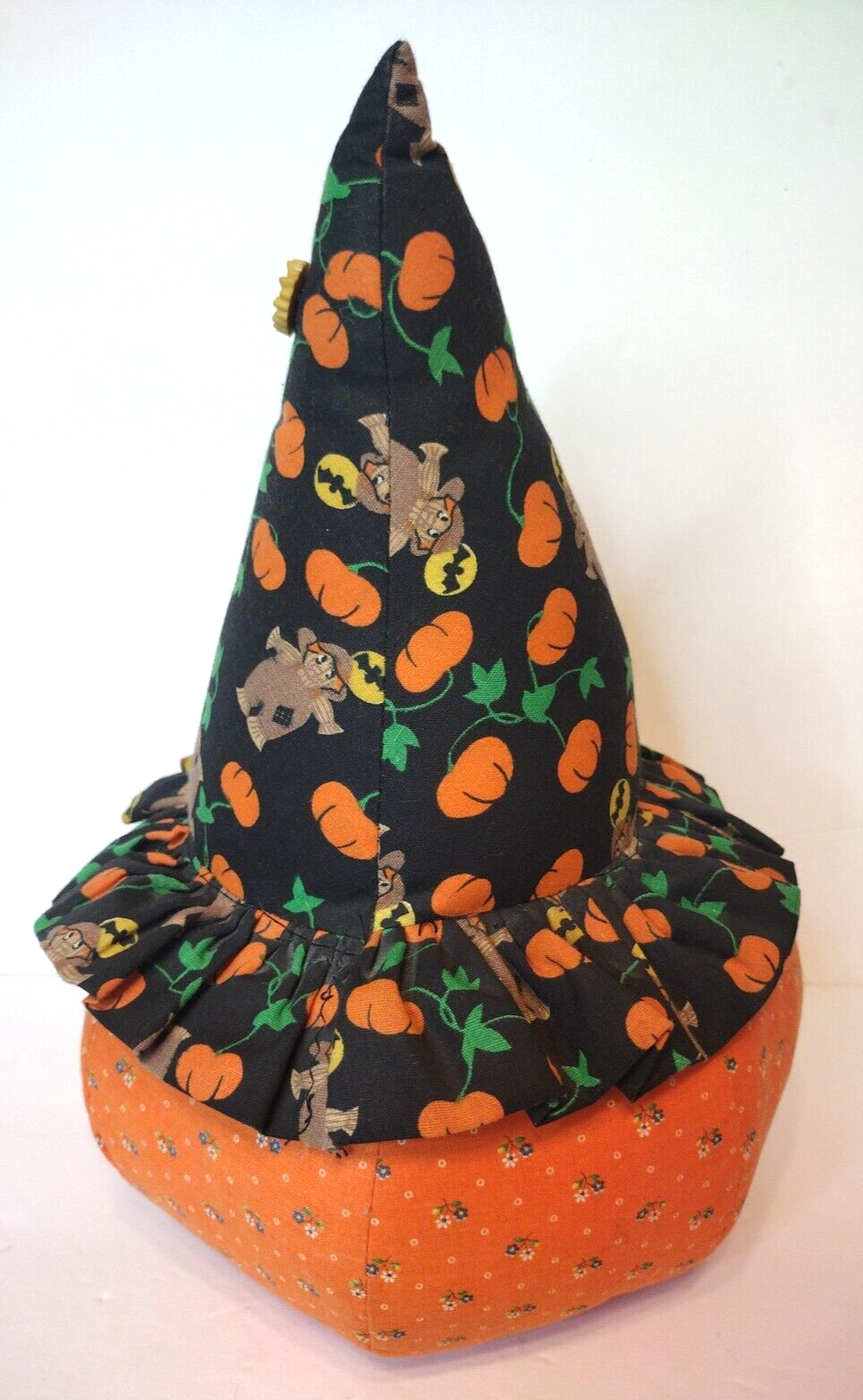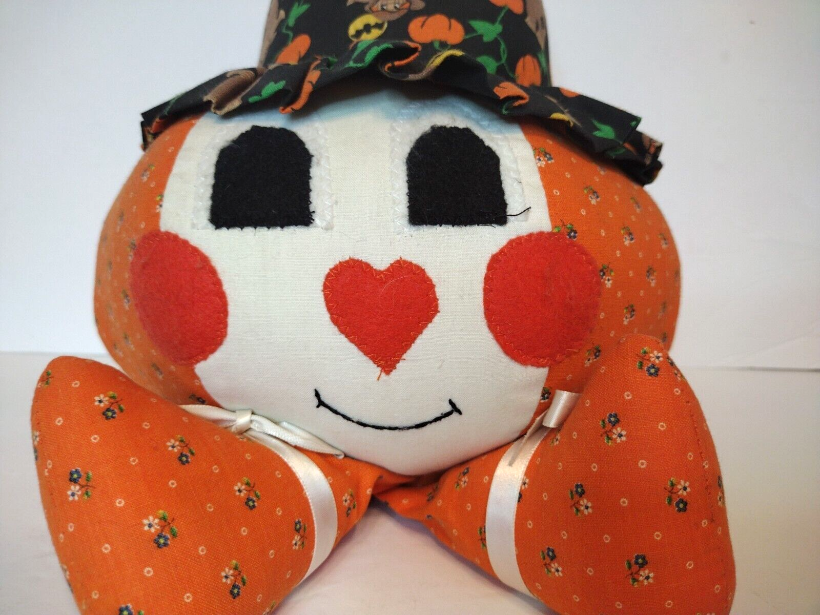This adorable shelf sitter measures approximately 13" in height and 25.5" in circumference at its thickest. The hat has little scarecrows on it and a little sunflower attached to the top of the hat. Please see all photographs as they are part of the description. Shipped with USPS Ground Mail. X17