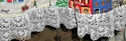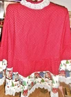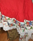 Fantastic find: this handmade tree skirt that features classic red and lace with home town scene! Very good, clean condition; stored carefully. Size is large. cotton fabric, lace is double tiered white. Measures approx 4 1/2" diameter at top x 62" diameter at lace edge. See photos for all the details. Always smoke-free.. Please see all my listings for clothes, accessories and unique finds!. Shipping is always combined when possible.