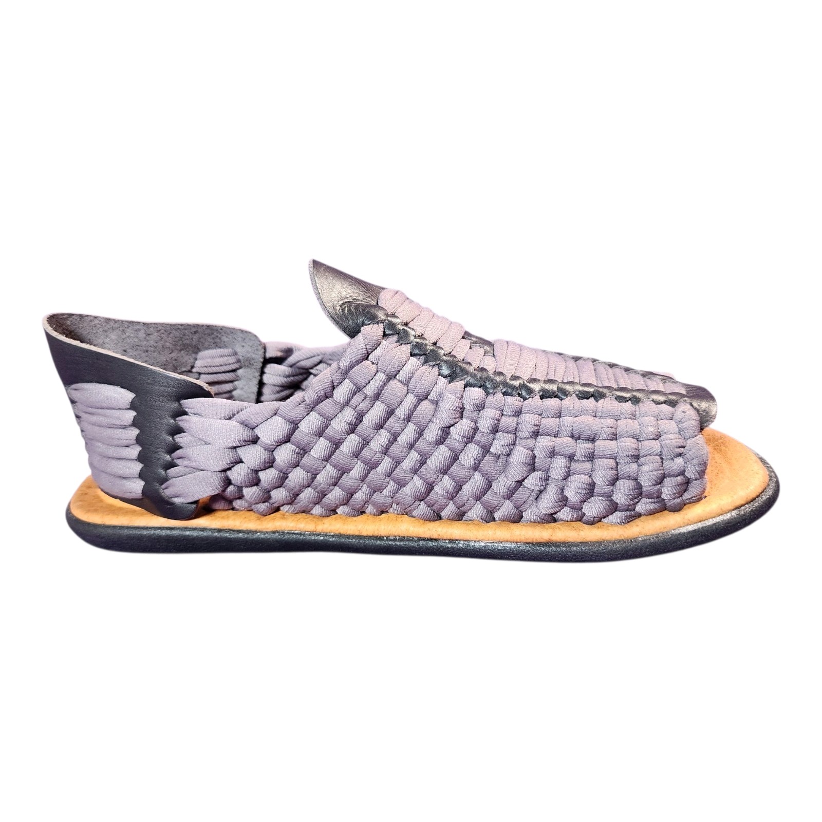 These handmade huarache sandals are crafted with authentic Mexican design. The black and yellow sections are made of genuine pigskin leather, combined with durable fabric weaving for comfort and flexibility. The sole is made of lightweight acrylic, offering durability and support. Designed as unisex footwear, these huaraches are perfect for casual wear, summer outings, or beach style. Their artisanal construction ensures a unique and stylish look with every step. These sandals naturally stretch, making a size 12 US fit perfectly for both 11.5 US and 12.5 US.