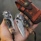 【Handmade knife】 The total length is 7.1 inches. Damascus steel core is made of VG10 steel with a hardness of 60HRC. It has strong cutting performance, high hardness, and lasting edge retention. The blade is manually fired and forged with 67 layers to form a complex and beautiful pattern, 【Fashionable and comfortable handle】 It is ergonomically designed. It is made of resin and maple. The 4-inch handle provides a comfortable grip and control feel. After a long time of use, the grip will become more delicate and smooth. 【Safe and stable design】Damascus steel knife has a simple and reliable pad lock to prevent accidental closing, so that users can use it with ease. The ceramic ball system can be opened smoothly with one hand when the fin is extended 【Elegant leather jacket】 It is made by hand craftsmen, carved and sewn. It is beautiful and convenient to carry. It is small and practical. The knife can be easily carried by folding it and putting it in the pocket. It can also be used as a gift or collection, 【Multi purpose choice】 It is suitable for various outdoor activities, such as survival, outdoor camping, fishing, hiking and hunting. The knife is packaged in a gift box and is a college gift for men, women, men, and even father-in-law