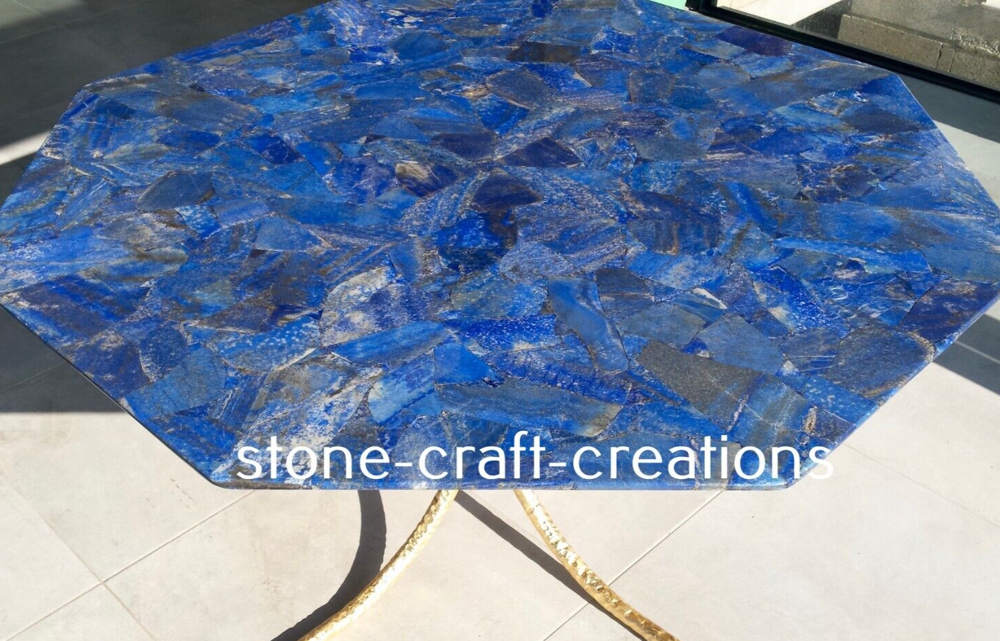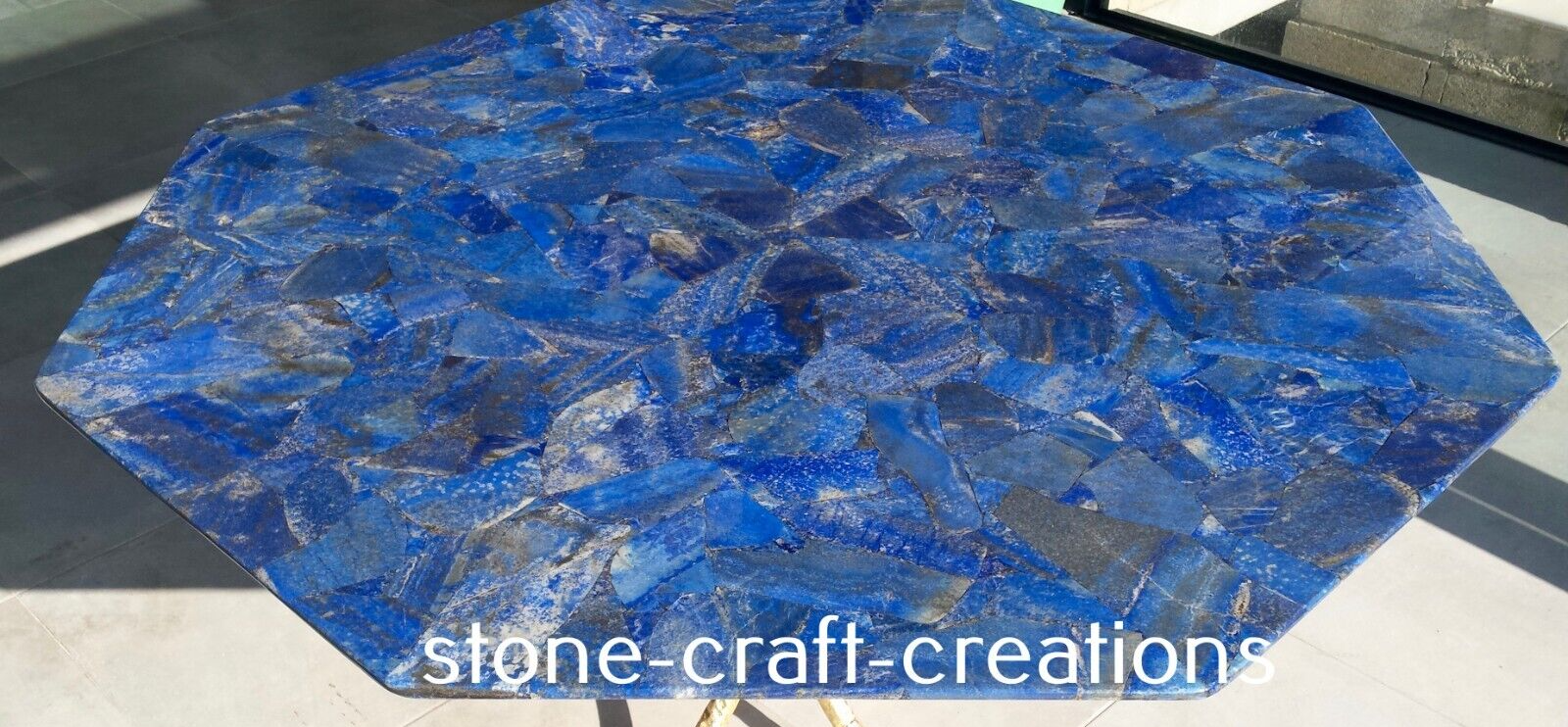 Welcome To Stone-Craft-Creations Shop Description Very unique Art by Indian Artist ,Coffee/Side Table top Used Material: Marble & Multi Semi Precious Gemstones Inlaid Size: 30"x30" inch Color: Blue Shape: Octagon Pattern: Handmade Room: Bedroom, Dining Room, Hallway, Home Office/Study, Kid’s Bedroom, Kitchen, Laundry/Utility Room, Living Room,Patio, Playroom Packaging: Wood & Foam Export Packing Shipping: Air Can be customize ,Please message your desired size Process of Making Marble Inlay 1. We are inlaying semiprecious stones in three different colors of marble White Marble,Black Marble & green marble. 2. The Marble used to inlay the semiprecious stone comes from city of Makrana, Rajasthan India. 3. First we cut the marble in different shape example Round,Octagonal,rectangle,oval & square shape. 4. After cutting the marble we paint the surface of marble with Hina(red Color) so we can sketch the geometry on the surface of Marble. 5. With the Help Of emery wheel we cut,polish & shape the semiprecious in different forms of flowers,buds,leafs & stems all the cutting of the semiprecious stones are manually cut by the artisans. 6. After cutting the semiprecious stones we assemble them to complete the motif & then the semiprecious stones are placed on the surface of marble so we can trace them on the surface of marble to make the exact size of the cavities once the stones are traced we remove the stones from the surface of marble & then manually we chisels the marble with the diamond chisels & tungsten carbide chisels once the cavities are completed we place the semiprecious stone in the cavities to check the depth of the stones. 7. When we are fully sure that the stone fits well in the cavities we use special kind glue to fix the semiprecious stones into the marble. 8. After completing the inlays into the marble we first rub the surface of marble with sandstone & then we polish the surface of marble with sandpaper which brings the natural shine on the surface of marble & to the semiprecious stone & we use wax polish to make the surface shiny. 9. Most interesting expect of this pietre dure( marble inlay with hard stone) all the designs are made by the artisans are purely an imagination of artist once made they cannot make another one exactly the same it will look similar but will not be the same. 10. This beautiful art is a dying art of Agra,India the artisans those make this beautiful art are the descendants of those families who built the Tajmahal in 17 century Tajmahal is a monument of love & you can easily see the artwork done with the same technique on the walls of the Tajmahal. 11. I Invite you to come to Agra,India & visit the beautiful Tajmahal & you will surely be impressed & we request you give us a chance to show you the true handmade art of Agra by our artisans. 12. When you are purchasing this beautiful handmade Marble inlay art you will always be happy because all the pcs made by our artisans with love,hope & happiness. 13. You will always be enjoying the beautiful handmade marble inlay artwork secondly you will be supporting the local artisans of Agra,India to keep this beautiful dying art Alive. 14. All the purchase benefits the artisans & the buyer as there is no middle men in selling & buying. Inspiration/Story Behind This Product 1. This beautiful inlay art is a dying art of Agra,India the artisans those make this beautiful art are the descendants of those families who built the Tajmahal in 17 century Tajmahal is a monument of love & and one of the seven wonders in the world you can easily see the artwork done with the same technique on the walls of the Tajmahal. Note 1.The marble inlay table is made in Agra, India. 2.The marble inlay table will be delivered by FedEx or DHL free of cost door to door. 3.If there is any local tax,custom duties or Vat will be paid by the buyer at the destination. 4.The parcel is dispatch with proper packing & fully insured covering all kind of risk. 5.This marble table illuminates if the light arrangement is made under the plate. 6.It is an art piece which will be a beauty & the conversation pieces at home. 7.If You Are Looking Something Customize, Let Us Know We Will Make For You As Per Your Design, Size & Shape. 8. This is only table top its not include any wooden iron leg. Thank you very much for admiring beautiful handmade marble inlay art. Please recommend your friends & family members to visit our ebay store this art is Dying art of Agra & we need your participation to keep this dying art alive. Thanking you in anticipation for your great support. If you are in Agra please email us we love to show you the process of marble inlay work at our premises