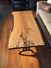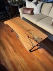 Handmade Live Edge Cherry Wood Epoxy River Coffee Table With Black Steel Legs.