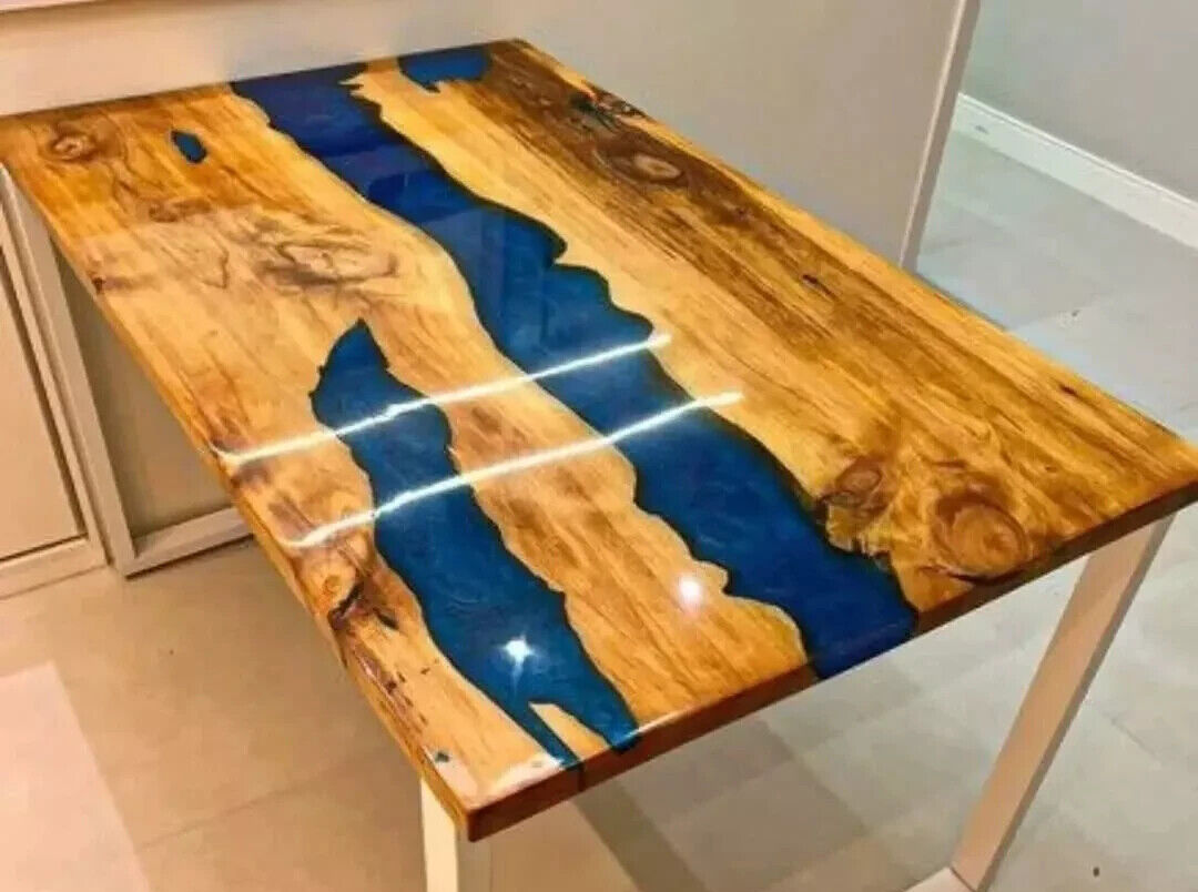 $ 580.46Handmade Blue Epoxy Resin Live Edge Wood Table with Custom Design Decor