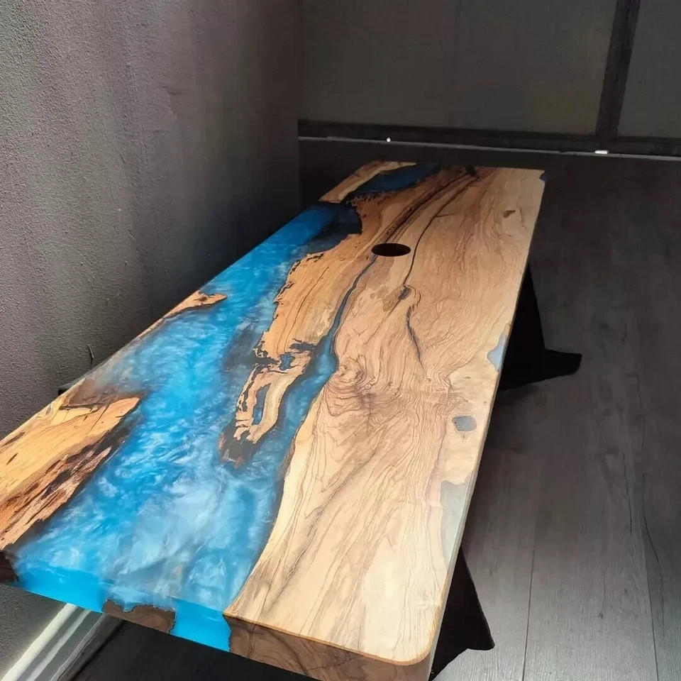 Product Information Size: According to Size Variations Material: Wood, Epoxy, Resin & Handmade Arts Shape: Rectangle Color: Blue Epoxy table tops have become progressively well known lately, on account of their dazzling appearance and strength. These tabletops are made by blending epoxy pitch in with a hardener and pouring it onto a pre-arranged surface. When restored, the epoxy frames a gleaming, smooth completion that improves the regular excellence of the wood or different materials utilized. One of the vital benefits of epoxy table tops is their capacity to make a feeling of profundity and three-dimensionality. The straightforward idea of the epoxy permits the fundamental materials to radiate through, bringing about an extraordinary and eye-getting tasteful. Likewise, epoxy is accessible in a large number of varieties and gets done with, considering unending imaginative conceivablex outcomes. One more significant advantage of epoxy table tops is their uncommon toughness. Epoxy is exceptionally impervious to stains, scratches, and intensity, pursuing it an ideal decision for high-traffic regions like feasting tables or ledges. This strength additionally guarantees that the table top will stay in top condition long into the future, decreasing the requirement for continuous support or substitution. Besides, epoxy table tops deal a degree of customization that is unparalleled by different materials. Planners and mortgage holders can consolidate different components like wood cuts, stones, shells, or even photographs into the epoxy gum to make an exceptional piece that mirrors their own style. The capacity to feature novel and significant items inside the tabletop adds a nostalgic touch to the general plan. Notwithstanding, it is crucial for note that making an epoxy table top requires cautious planning and ability. The surface should be appropriately sanded, cleaned, and prepared before the epoxy is poured to guarantee a perfect completion. Also, the restoring system can require a few days, during which the table should stay undisturbed to forestall defects. All in all, epoxy table tops are a famous decision for those looking for an outwardly dazzling and sturdy surface. With their capacity to improve the excellence of materials, endure day to day mileage, and proposition unending customization choices, epoxy table tops have secured themselves as a go-to decision for inside creators and property holders the same. Kindly Note:-- As raw wood is used in its natural form and shape to make the table, the table shown in the photos has already been purchased so actual product may vary from the picture shown. This is only table, any kind of legs ( Iron, Wooden, Marble ) is not included in this price. If you want any kind of legs so please message us. You can customize your product easily like:- Shape , Colour , Size & Design. Thanks for Visiting.....