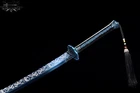 [Size] : Total length: 108 cm Blade length: 73 cm Handle length: 31 cm width: 3.6 cm thickness: 0.6-0.5 cm [Material] : The selection of 65 manganese steel, after the elastic limit treatment, 15 manual grinding, to ensure that the knife body is durable, while keeping the edge sharp. [Hardness] : up to 58 hardness, with excellent durability and service life. [Sheath material] : solid wood covering, providing perfect protection and display effect of sword. [Equipment] : The alloy is used, and the blade is forged as a whole, showing high quality and technological level. [Features] : Meizying Ling knife with its ancient Fengming early style design, excellent blade material and forging technology, as well as exquisite cutting edge design, showing extraordinary sharpness and performance. [Application] : Suitable for martial arts actual combat, collection, display and decoration and other occasions, is a practical and ornamental sword choice. [Features] : The knife type is the early style of Gufengming, the blade body is slender and slightly curved, and the blade tip is sharp and slightly upward! The blade type is large V-plane, flat and sharp, the overall radial is gradually narrow, the axial is gradually thin forging, the center of gravity of the whole body is reasonable, and the practice is effortless. Please note: 1. Due to the fine handwork, the size and weight may vary slightly. Please be assured that every effort has been made to ensure the best quality of each product. 2. Although we have made every effort to match the product image to the actual product, there may still be slight color differences due to lighting factors. Please consider this before buying. 3. We strive to process and ship your order in a timely manner to ensure that you receive your goods as soon as possible. 4. Our swords are sharp. Be careful when playing with them 5. Our products do not include knife holders and other decorations in the picture