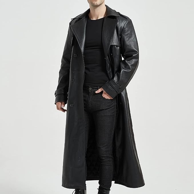 Description: Make a bold statement with this handmade men’s full-length faux leather trench coat. Crafted from high-quality, animal-friendly faux leather, it offers the luxurious appearance of real leather while remaining lightweight, durable, and 100% cruelty-free. Perfect for gothic fashion, cosplay, Matrix-inspired outfits, or adding an edgy flair to your daily wardrobe. This coat features a classic trench silhouette with a modern twist: wide lapels, a double-breasted front, a structured back belt, and adjustable cuffs for a tailored, dramatic look. The quilted polyester lining provides warmth and comfort without bulk, making it ideal for cooler autumn and winter days. Each piece is individually handmade, ensuring unique craftsmanship and premium detailing. Details & Specifications: Material: Premium faux leather – sleek, durable, and animal-friendly Lining: Quilted polyester for warmth and comfort Color: Black Fit: Regular with a structured, tailored silhouette Length: Full-length (below knee) Closure: Double-breasted button front Collar: Wide notched lapel Cuffs: Adjustable strap-button design Back: Fixed faux leather waist belt for structure Pockets: Two functional side pockets Style Inspiration: Gothic, punk, Matrix, cosplay, streetwear Handmade: Yes – individually crafted for unique quality Ideal For: Autumn/winter wear, gothic events, cosplay, or stylish nights out Why You’ll Love It: Premium Handmade Quality: Each coat is meticulously crafted for durability and unique detailing Cruelty-Free Luxury: Sleek faux leather offers the look of real leather without harming animals Dramatic Style: Full-length trench design adds sophistication and a bold statement Warm & Comfortable: Quilted lining keeps you cozy without extra bulk Versatile Fashion: Ideal for gothic fashion, cosplay, themed parties, or edgy streetwear Care Instructions: Wipe clean with a soft, slightly damp cloth Avoid soaking or using harsh chemicals Store in a cool, dry place away from direct sunlight Hang on a padded hanger to maintain shape Use a faux leather conditioner or gentle surface cleaner as needed 1. Shipping Policy We process and ship orders within 3-5 business days after payment confirmation. Delivery time varies based on the shipping method and destination. Estimated delivery times will be provided at checkout. 2. Return & Refund Policy We accept returns within 14 days of the package being delivered. Returns requested after this period will not be accepted. The item must be in its original condition, unused, and with all original packaging and tags attached. Return shipping costs are the buyer’s responsibility unless the return is due to our error or a defective item. Refunds will be processed once we receive and inspect the returned item. 3. Custom & Duty Taxes International buyers are responsible for any customs and import taxes that may apply in their country. If your package is held at customs, it is the buyer's responsibility to pay any applicable customs duties or taxes to release the package. 4. Custom & Personalized Orders Customized or personalized items are non-refundable and non-returnable unless there is a defect or an error on our part. Please ensure that all customization details are correct before placing an order, as we cannot make changes once production has started. 5. Order Cancellation Policy Orders can only be canceled within 12 hours of purchase. After this period, we may not be able to cancel the order if it has already been processed or shipped. 6. Damaged or Incorrect Items If you receive a damaged or incorrect item, please contact us within 24 hours of delivery with photos as proof. We will work with you to resolve the issue by providing a replacement or refund.