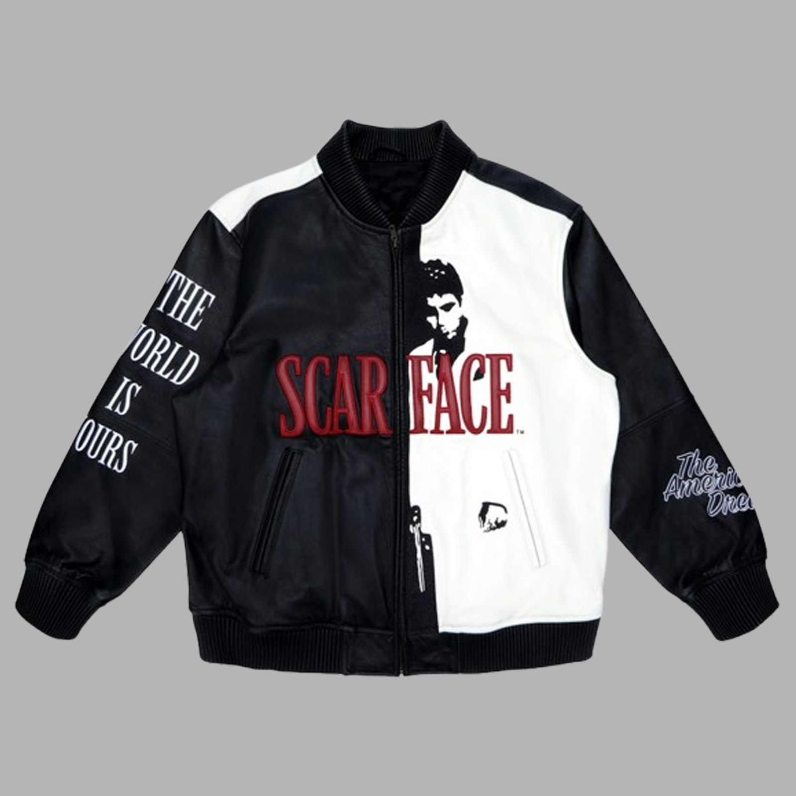 Description: Step up your streetwear game with this handmade Scarface Supreme leather jacket, inspired by the legendary Tony Montana. Crafted from 100% genuine sheepskin leather, this jacket delivers a soft, durable feel with long-lasting quality. The lightweight polyester lining keeps you comfortable without bulk, making it perfect for city streets, casual outings, or nights out. Detailes & Specifications: Material: 100% Genuine Sheepskin Leather – soft, premium quality, built to last Lining: Lightweight polyester for warmth and comfort Design: Bold black-and-white split with Scarface graphics, Supreme logo, and “The World Is Yours” lettering Style: Bomber / Varsity streetwear jacket Closure: Full-length front zipper Collar: Rib-knit bomber style for classic streetwear look Cuffs & Hem: Rib-knit for snug fit and comfort Pockets: Two functional side pockets Fit: Regular fit, perfect for layering Sizes Available: XS – 3XL Handmade Quality: Individually crafted by skilled artisans Condition: Brand New Why You’ll Love It: Premium Leather: Soft yet durable sheepskin designed to last Bold Streetwear Design: Eye-catching Scarface graphics and split color pattern Lightweight & Comfortable: Polyester lining provides warmth without adding bulk Collector’s Item: Perfect for Scarface fans and streetwear enthusiasts Versatile Styling: Ideal for casual wear, layering over hoodies, or urban fashion looks Care Instructions: Clean professionally with leather specialists Avoid machine washing or tumble drying Store in a cool, dry place away from direct sunlight Apply leather conditioner occasionally to maintain suppleness and color Avoid prolonged exposure to moisture or rough surfaces Shipping Policy 1.We process and ship orders within 3-5 business days after payment confirmation. Delivery time varies based on the shipping method and destination. Estimated delivery times will be provided at checkout. 2. Return & Refund Policy We accept returns within 14 days of the package being delivered. Returns requested after this period will not be accepted. The item must be in its original condition, unused, and with all original packaging and tags attached. Return shipping costs are the buyer’s responsibility unless the return is due to our error or a defective item. Refunds will be processed once we receive and inspect the returned item. 3. Custom & Duty Taxes International buyers are responsible for any customs and import taxes that may apply in their country. If your package is held at customs, it is the buyer's responsibility to pay any applicable customs duties or taxes to release the package . 4. Custom & Personalized Orders Customized or personalized items are non-refundable and non-returnable unless there is a defect or an error on our part. Please ensure that all customization details are correct before placing an order, as we cannot make changes once production has started. 5. Order Cancellation Policy Orders can only be canceled within 12 hours of purchase. After this period, we may not be able to cancel the order if it has already been processed or shipped. 6. Damaged or Incorrect Items If you receive a damaged or incorrect item, please contact us within 24 hours of delivery with photos as proof. We will work with you to resolve the issue by providing a replacement or refund.