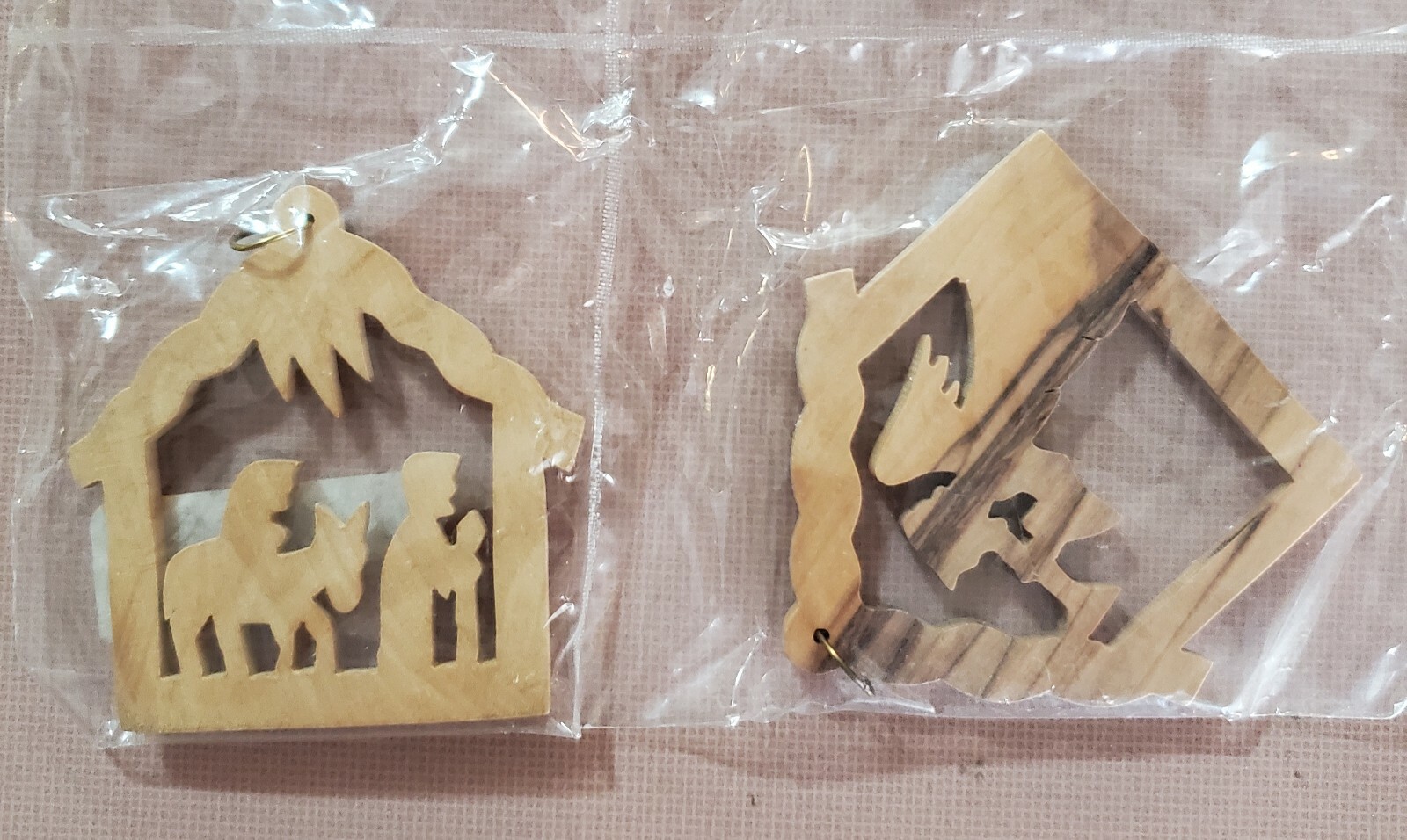 Handmade Olive Wood Christmas Ornaments from the Holy Land Nativity 6 Pieces