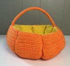 Handmade PUMPKIN BASKET Knit Crochet 12" Table Decor Halloween Fall Thanksgiving Excellent condition. Measures approximately 12" round. The sides are about 5" tall & the height of the entire basket including handle is about 8". Please review all photos for best description. Feel free to send a message with any questions. Thanks for looking:) Inventory: B