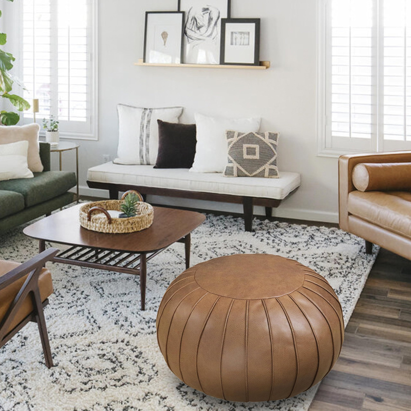 About Filling: The poufs are shipped UNSTUFFED. You can use polyester or cotton fiber filling. Also you can recycle, reuse, and stuff it with old towels, poly fill, bubble pack, cotton batting, fabric remnants, towels, blankets, used clothes, cushion, pillow, etc. TOUGH and DURABILITY: Made with high quality Faux Suede (Leath-Aire) , Raised stitching is more Three-dimensional. pouf is designed to hold 220 lbs., delivering outstanding comfort and withstand everyday use. COMFORT and COMPACT: ottoman dimension is approximately 21.6” dia. and 13” high, weighing a mere 1.1 lbs. (unstuffed weight). Lightweight & portable design makes pouf fit in perfectly just about anywhere. Invisible Zipper: The invisible zipper design does not rub the floor when moving, which is more conducive to protecting the floor. zipper's durability make it easy for open and close. MULTI-PURPOSE: 1. ottoman is great for comfortable foot stool, extra seating, coffee table, lazy sofa, home decoration and a great way to add style and personality to your space. 2. It is a good storage bag, It can toys, clothes, blankets, etc. It can be easily carried and moved so that you can have a picnic outdoors, party and so on.