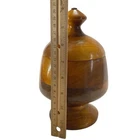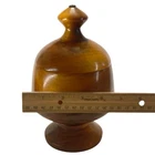 This handmade covered turned wood pedestal compote center piece candy dish is a unique and stylish addition to any home décor. The round, brown semi-gloss finish bowl sits on a pedestal, making it a versatile item suitable for all occasions. With its Americana theme and original design, this piece is a charming collectible item that adds a touch of American culture to any space. Crafted from wood, this footed/pedestal bowl is 8 inches in length and height, with a width of 5 inches, perfect for showcasing candies or potpourri in an elegant manner.