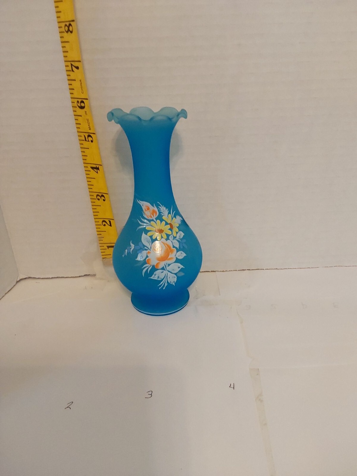 Material:GlassItem Height:111/2Color:BlueItem Weight:5.9ozType:VaseCountry/Region of Manufacture:United StatesSeller Notes:“This is in great condition but did not come with a box”Brand:Westmoreland GlassPackaging:Box