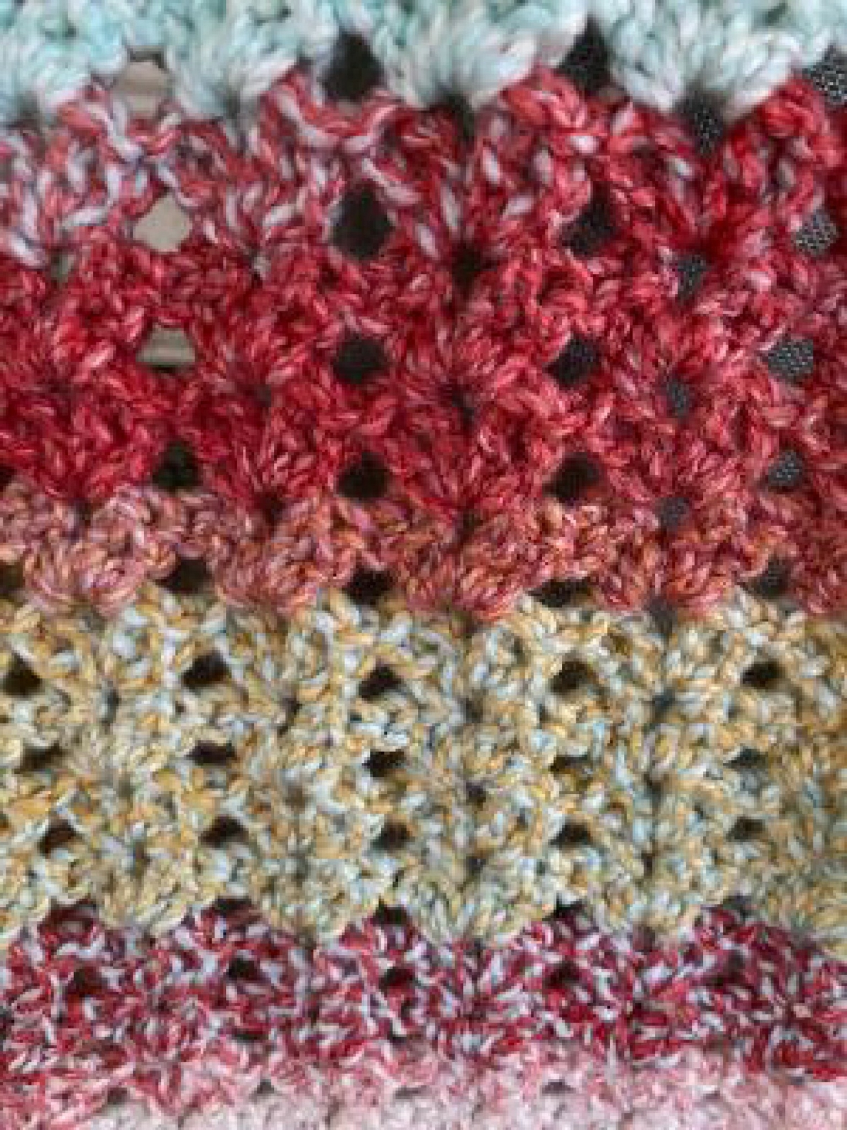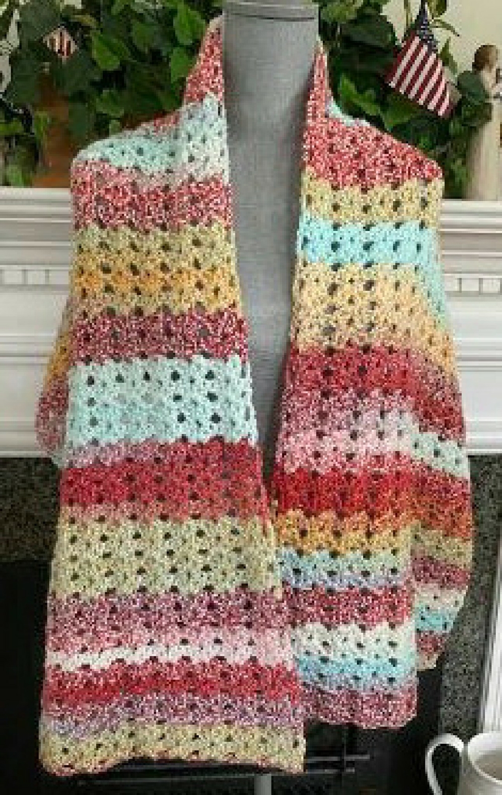 ITEM #3146 Brand new and ready to ship This is a handmade crocheted rectangle shawl / wrap / scarf I used a nice soft yarn that is 100% acrylic that is cozy and very soft Color: multicolor variegated in red / gold / aqua, so very pretty! Size: approximately 18” wide x 60” long machine wash / machine dry / do not iron all of my items come from a smoke-free & pet-free home Please visit my EBAY STORE at JAYDEECREATIONS for hundreds more 'handmade items', craft patterns, craft supplies, etc