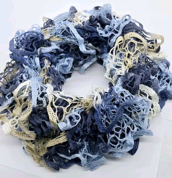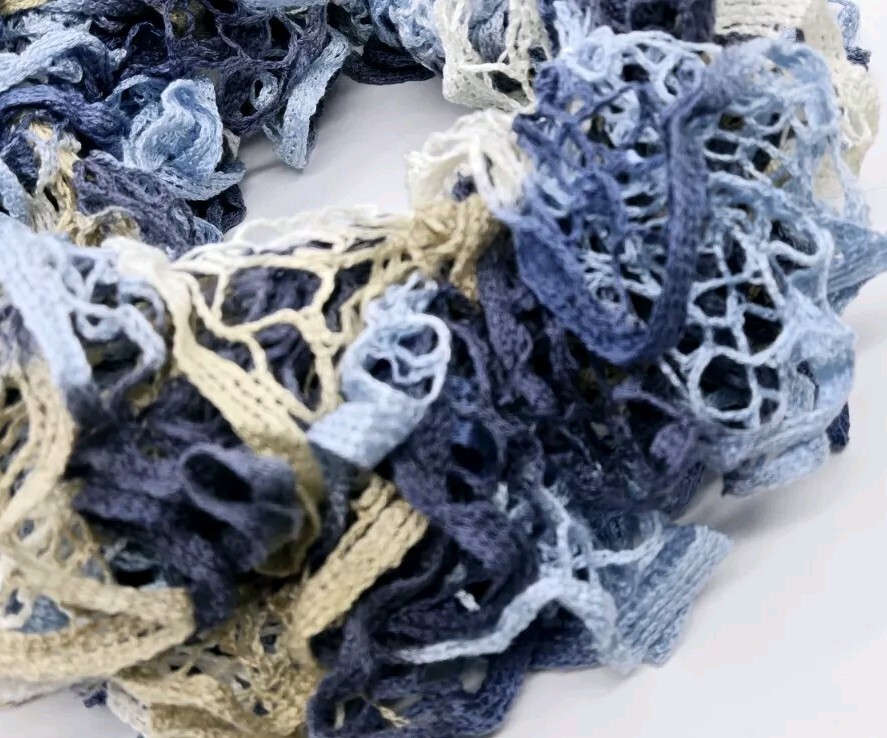 $ 9.42Handmade Crocheted Blue Ruffle Scarf in Multi Shades 60 Inches Long