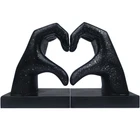 Hands Decorative Book ends 💠Creative Decorative Book Ends:Unique hand heart bookends size 6” x 3” x 5”, 3Pound. Heavy-duty bookends,Classic black color,Basic but legant design. Sturdy and long-lasting all-resin construction is strong and heavy enough to keep your books,CDs ,DVDs neat and upright. 💎 Professional Anti-Slip Pad Design:Made with selected environmentally friendly resin material with traditional handmade processing, 4 Pcs anti-slip foam pads on the bottom of each bookend make it work well in different conditions like shelves,living room,bedroom. 💕Sturdy and Durable Home Ornaments:High-quality powder-coated surface and round edges make sure that your shelves or books don’t get any scratches or scuff marks. Anti-oxidation, corrosion resistant, uneasy to wear. Sit on your shelf as a decorative item. Enrich the blank space of your room. 💠Bookends for Shelves Decorative:The bookends adopts the unique design of the hand heart. The stylish and simple shape is not only suitable for office places, But also a great choice for your home decorations or gift for your your family or friends on Mother's Day,Father's Day,Birthday,Christmas. 🌈Great Product Quality and Service:If you are tangle in choosing a practial and stylish home decor gift, This book ends would be a great choice for you.This can even be used as a stand-alone. Please don't hesitate to contact us for any questions, Your satisfaction is guaranteed.