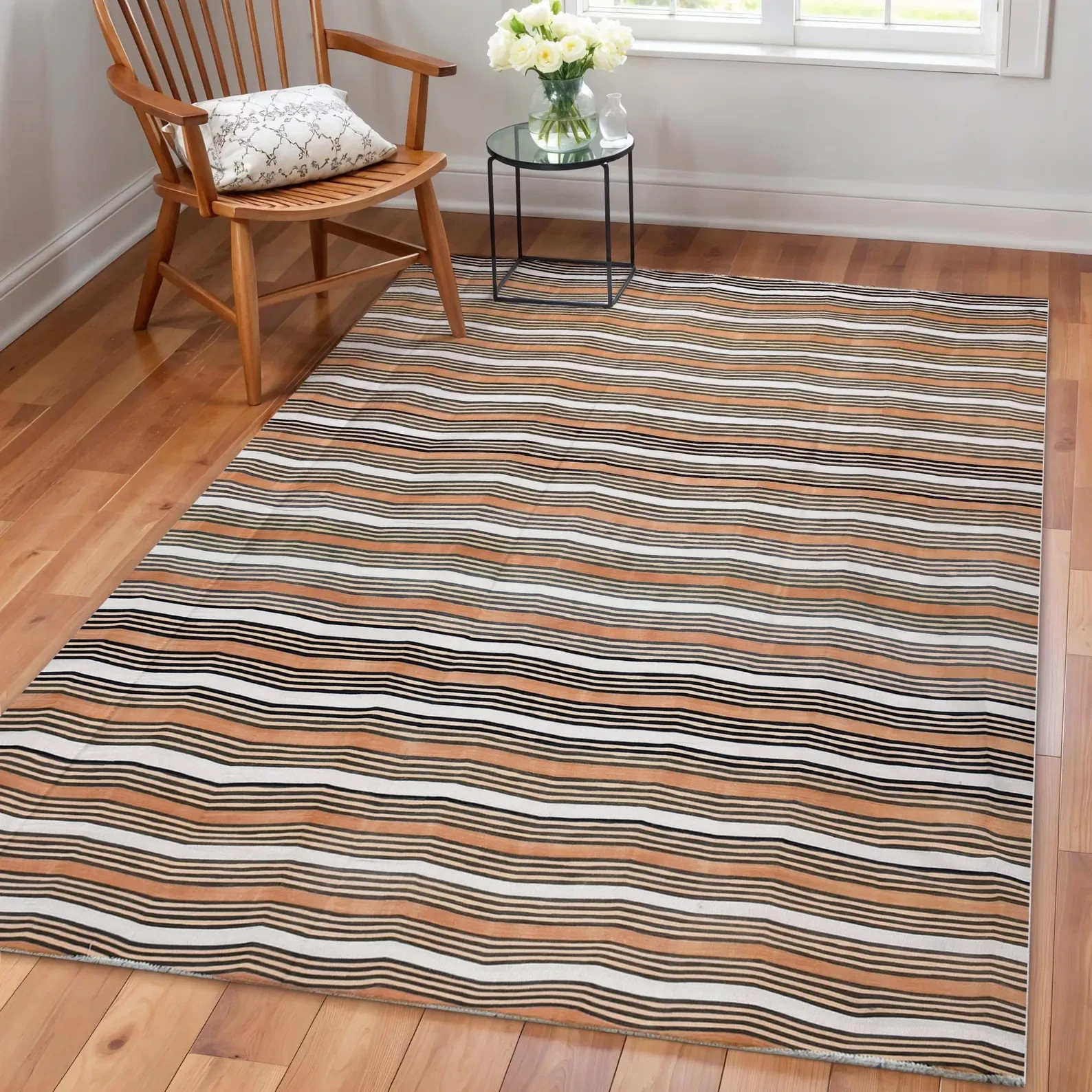 Handwoven Cotton Dhurrie Rug Color Brown and Whtie Handmade Design Carpet Rug