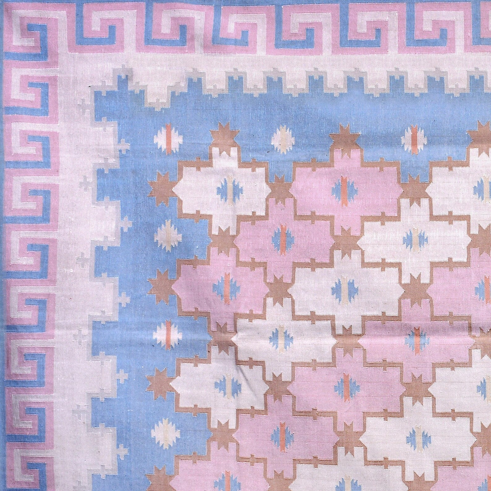 $ 80.26Geometric Handwoven Cotton/Wool Dhurrie Rug Color Beige and Brown Carpet Rug
