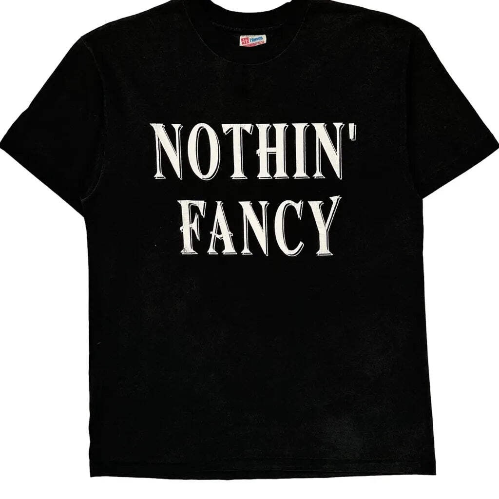 Hanes Single Stitch T-Shirt - Large Black Cotton Blend Description: Hanes T-Shirt, fits Large.Front Text: Nothin' Fancy, Back Text: A Little Of This, A Little Of That... Gender: Mens Condition: Very Good Brand: Hanes Product Type: T-Shirt Era: 1990S Colour: Black Fabric: Cotton BlendFit & Length: Neckline Type: Crew Neck Fit: Regular Fit Length: Regular Sleeve Type: Straight Sleeve Sleeve Length: Short SleeveExtra Attributes: Pattern: Text Print Style: Casual Occasion: Casual Made In: Mexico Hanes Single Stitch T-Shirt - Large Black Cotton Blend Description: Hanes T-Shirt, fits Large. Front Text: Nothin' Fancy, Back Text: A Little Of This, A Little Of That... Gender: Mens Condition: Very Good Brand: Hanes Product Type: T-Shirt Era: 1990S Colour: Black Fabric: Cotton Blend Fit & Length: Neckline Type: Crew Neck Fit: Regular Fit Length: Regular Sleeve Type: Straight Sleeve Sleeve Length: Short Sleeve Extra Attributes: Pattern: Text Print Style: Casual Occasion: Casual Made In: Mexico × × × × × × × × × Buy now and save! Shipping info Click the Shipping & Payments tab above the listing description for more info Click the Shipping & Payments tab above the listing description for more info! Additional delivery notes PICK UP OPTION Sorry, our items are NOT available for pick-up. PAYMENT Immediate payment is required upon selecting "Buy It Now" or upon checking out through the cart. We accept payment via U.S. PayPal accounts and all Major Credit Cards, Debit Cards & Google Pay. We are legally required to collect sales tax in those states and localities where we maintain a physical presence (nexus). The applicable amount of sales tax charged to an order will be calculated based on the shipment destination's state and local sales tax laws. Thank you for shopping with us on eBay! Additional Information No additional information at this time Ask seller a question You might also like 501 Levis Jeans - 26W US 2 Light Wash Cotton Levis Jeans - 32W 30L Blue Denim 501 Levis Jeans - 32W 30L Gray Cotton Dickies T-Shirt - XL Black Cotton Contact To contact our Customer Service Team, simply click the button here and our Customer Service team will be happy to assist. Ask seller a question © Thrifted.com Shipping & Payments Click the Shipping & Payments tab above the listing description for more info Payment Accepted Payment Methods Immediate payment is required upon selecting "Buy It Now" or upon checking out through the cart. We accept payment via U.S. PayPal accounts and all Major Credit Cards, Debit Cards & Google Pay. We are legally required to collect sales tax in those states and localities where we maintain a physical presence (nexus). The applicable amount of sales tax charged to an order will be calculated based on the shipment destination's state and local sales tax laws. Thank you for shopping with us on eBay! Returns Returns are accepted Items must be returned within 30 days of the auction ending Buyer will pay for return shipping. eBay integration by